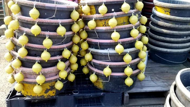 청어나 꽁치 미끼 매단 낚시 바구니를 어장에 죽 뿌려놓고 밤새 기다렸다가 새벽에 거두어들여 귀항하는데 요샌 줄곧 만선이라고.