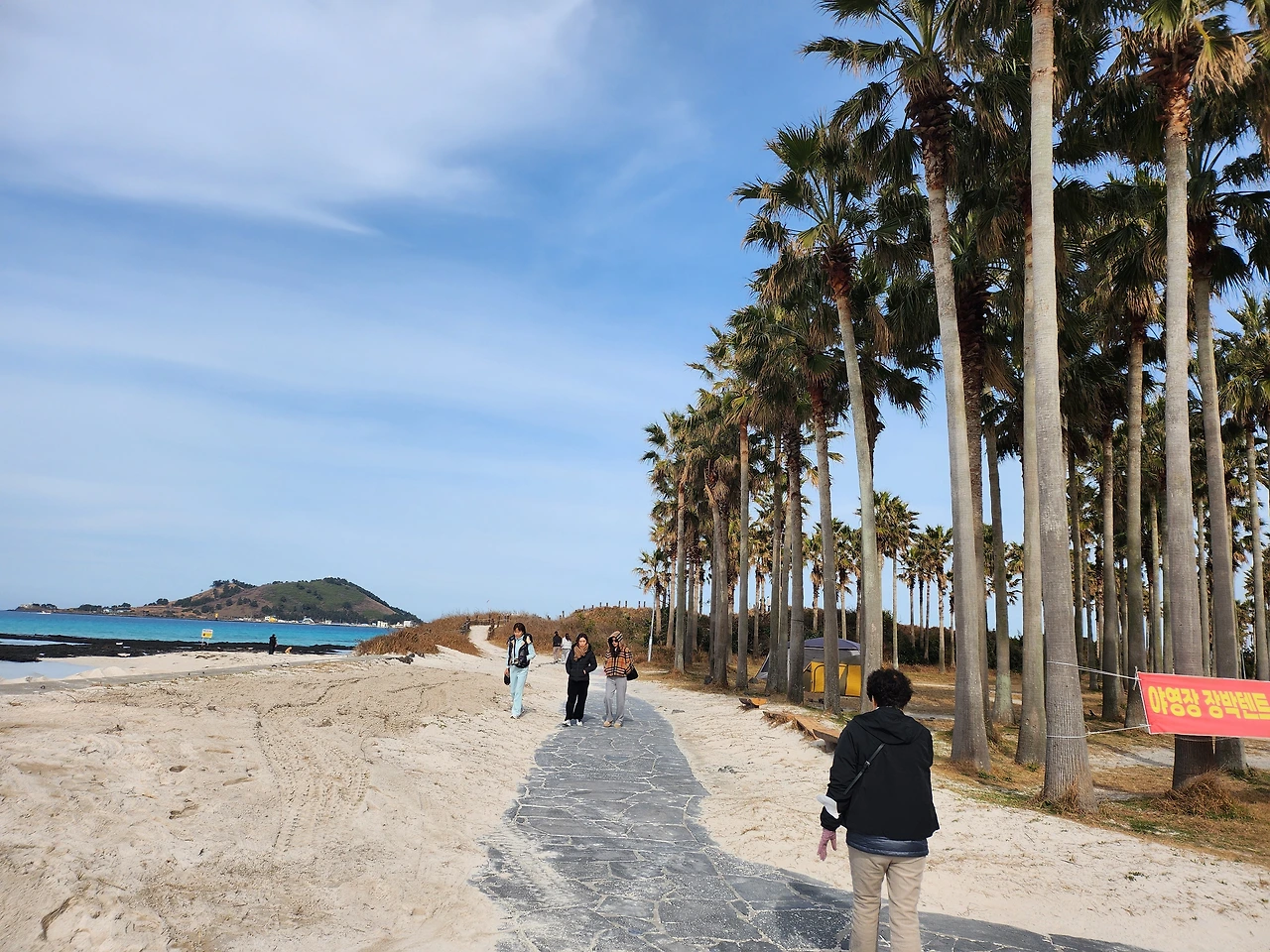 저만치 야자수 도열해 선 협재해수욕장이 점차 가까워지자 물 흥건히 들어찬 만조 바닷가에 내려가 한참을 거닐었다.