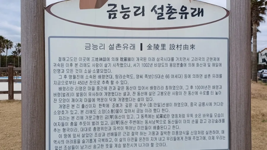 동시 편 편마다 읽어가며, 부락 유래 훑어가며, 단물깍과 금능 원담 뜻 새겨가며, 벽화 근사한 집과 그리스풍 집 구경하며 천천히.