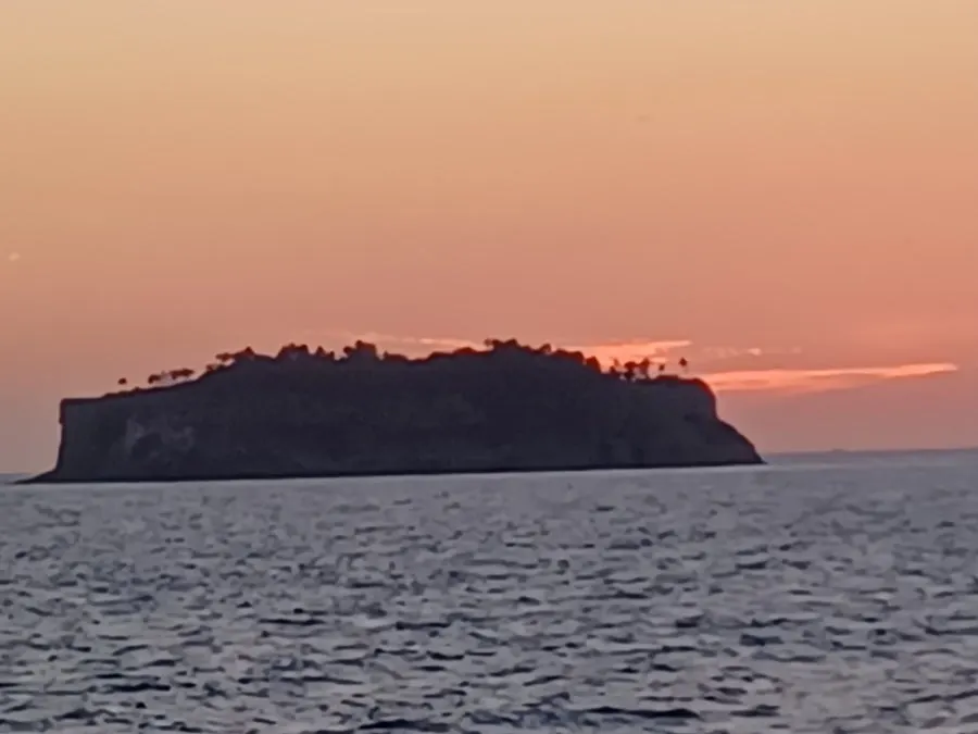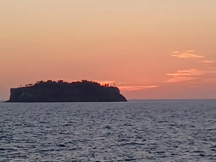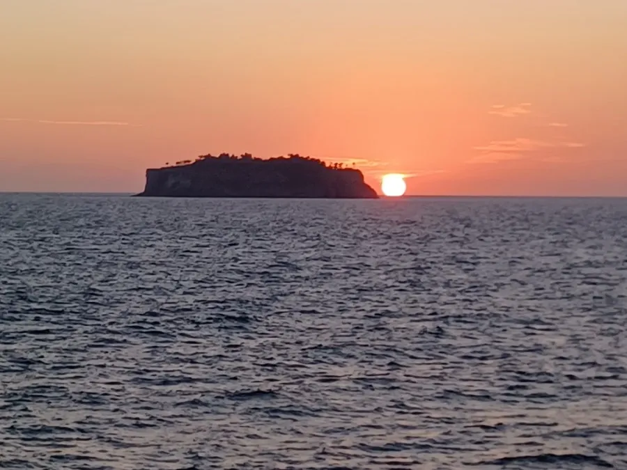 범섬 오른쪽으로 서서히 내려앉는 해.