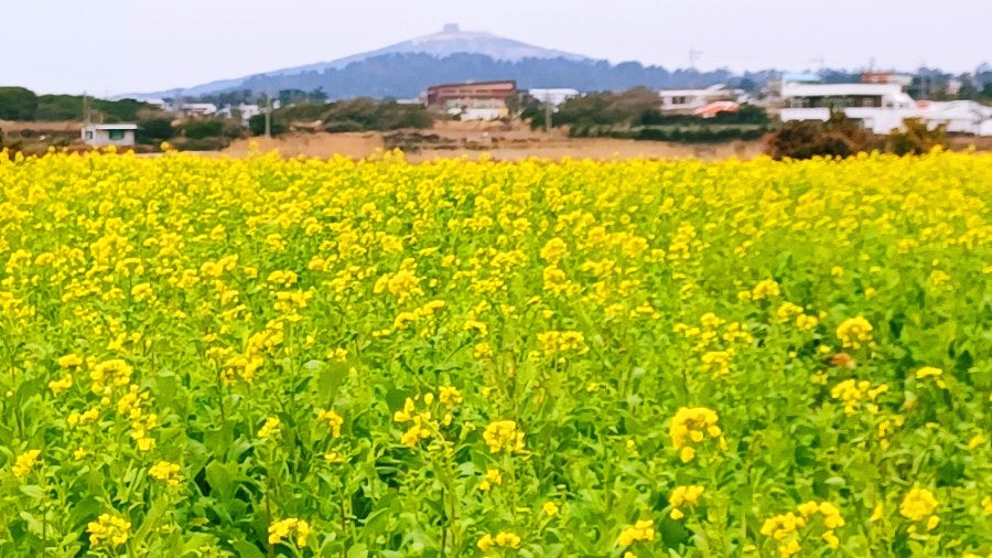 그렇게 생각에 파묻힌 채 되짚어 걷다 보니 어느새 모슬봉이 보이는 유채꽃길 지나 산방산까지 와버렸다.