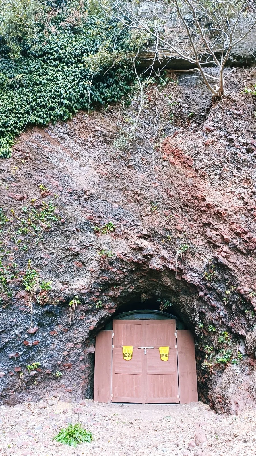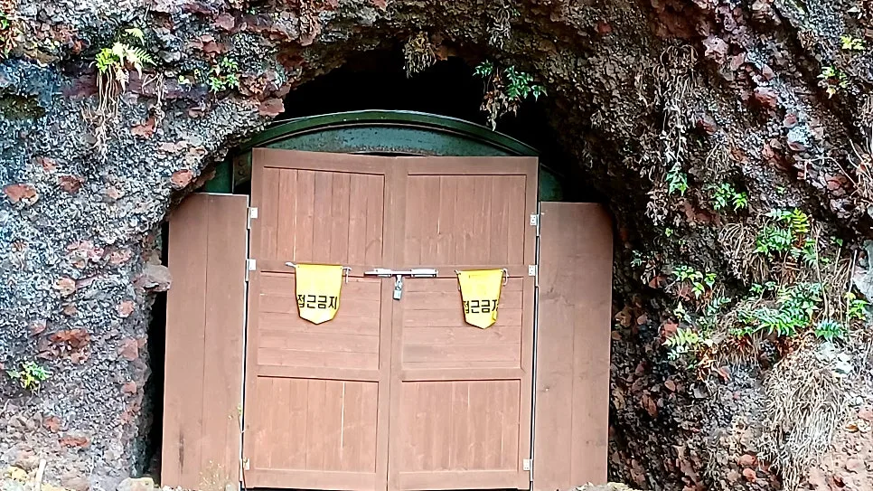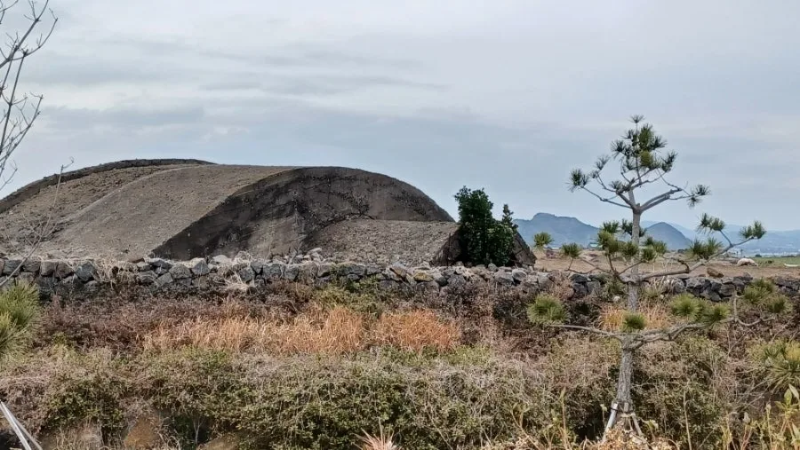 섯알오름 인근 밭 가장자리에도 동굴진지가 숨어 있기에 설명문을 읽어보니 제주도 내 진지동굴 중 가장 규모가 큰 격자형 미로 동굴이라고.