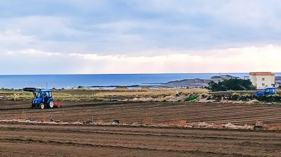 브로콜리며 양배추 무 마늘 유채꽃밭 평화로운 전원 풍경이 사방에 너르게 펼쳐져 있으나 살벌한 전투기 격납고와 동굴진지가 이웃한 이곳.
