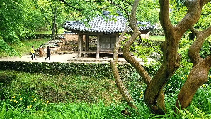 몇 단의 축대 올린 간결한 공간에 단아하게 자리한 서너 칸 누옥.