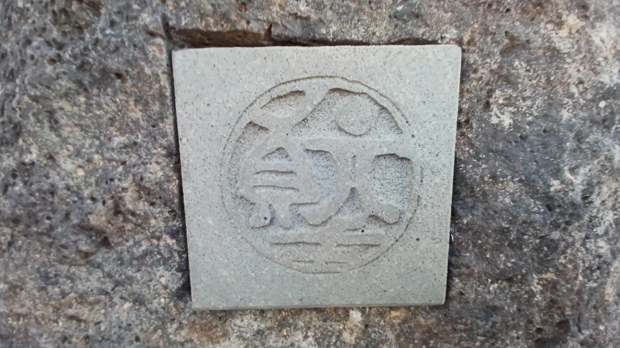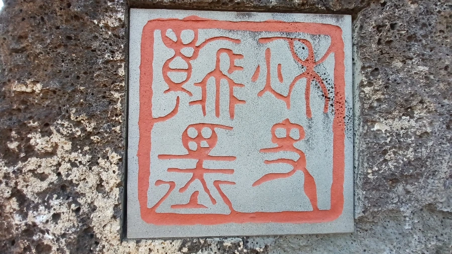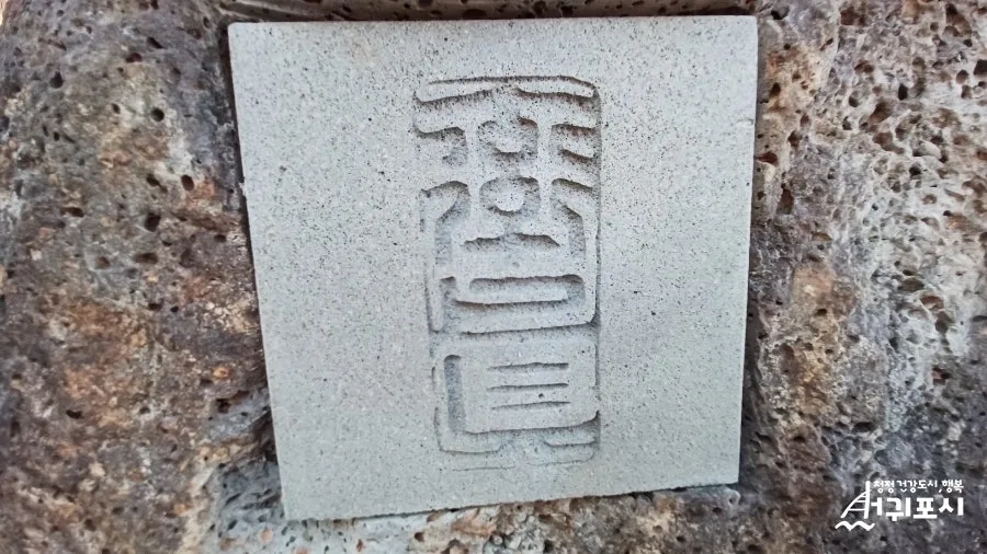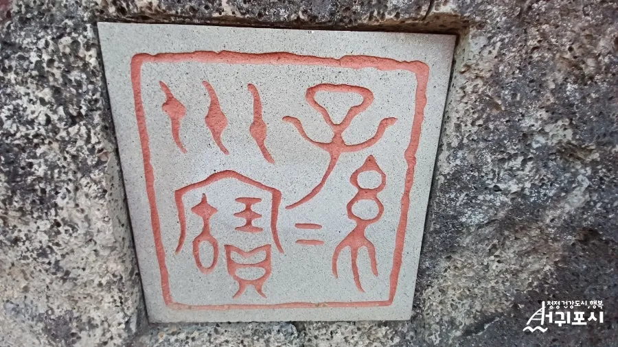 향교 윤곽이 드러날 즈음, 차도와 마늘밭을 경계 지른 돌담 바윗전에 전각 무늬가 나타나기 시작했습니다.