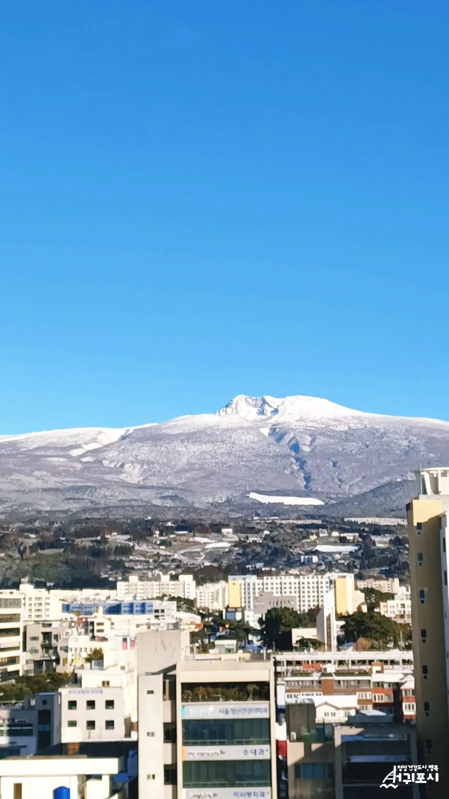 새하얀 너울 드리운 한라산, 아직은 설한풍 시린 정월이지만 하늘 푸르러 외출 준비를 했지요.