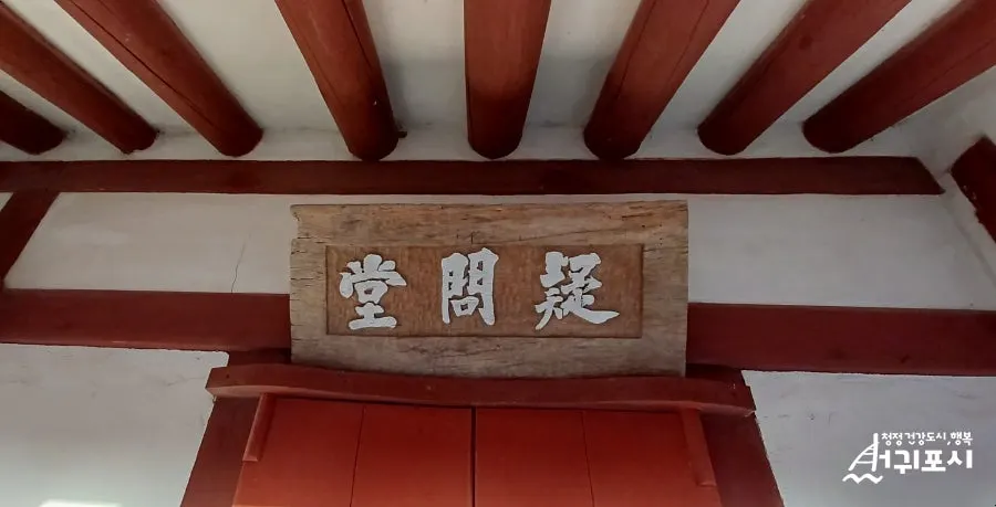 추사가 손수 썼다는 해서체 '의문당' 현판(진품은 대정읍 추사관 소장)이 걸린 동재를 한참 올려다보았습니다.