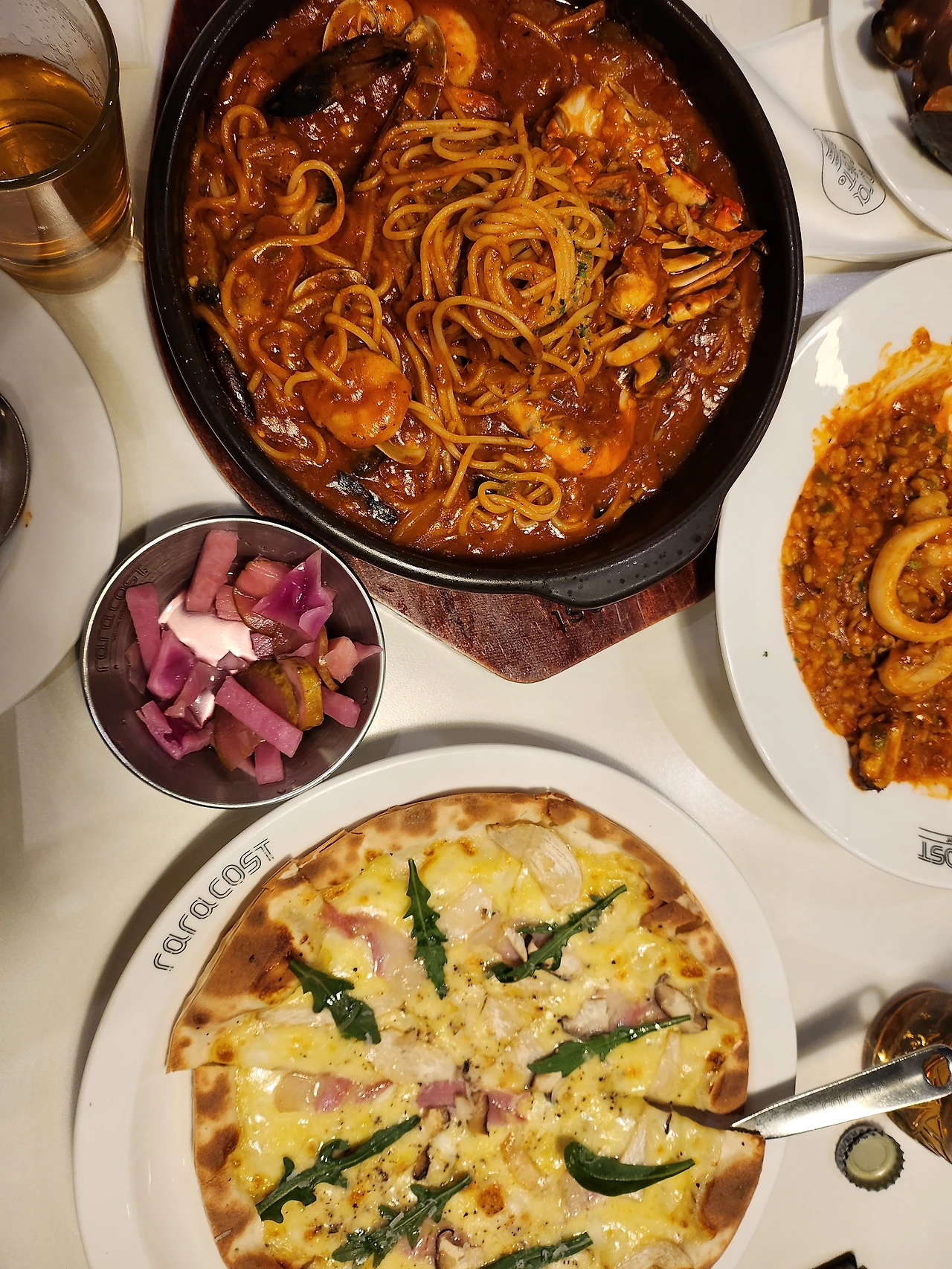 이번에도 한밤중에야 서귀포 중앙로터리 인근 파스타 전문집인 라라코스트에서 피자까지도 시켜 저녁을 걸게 먹었다.