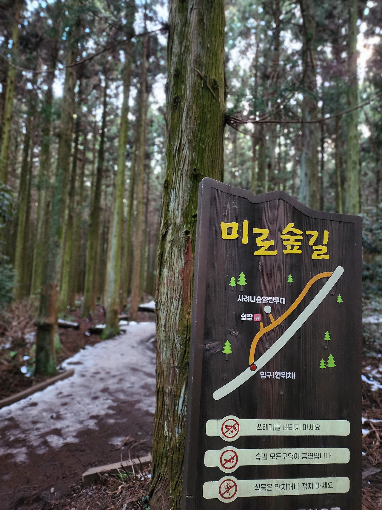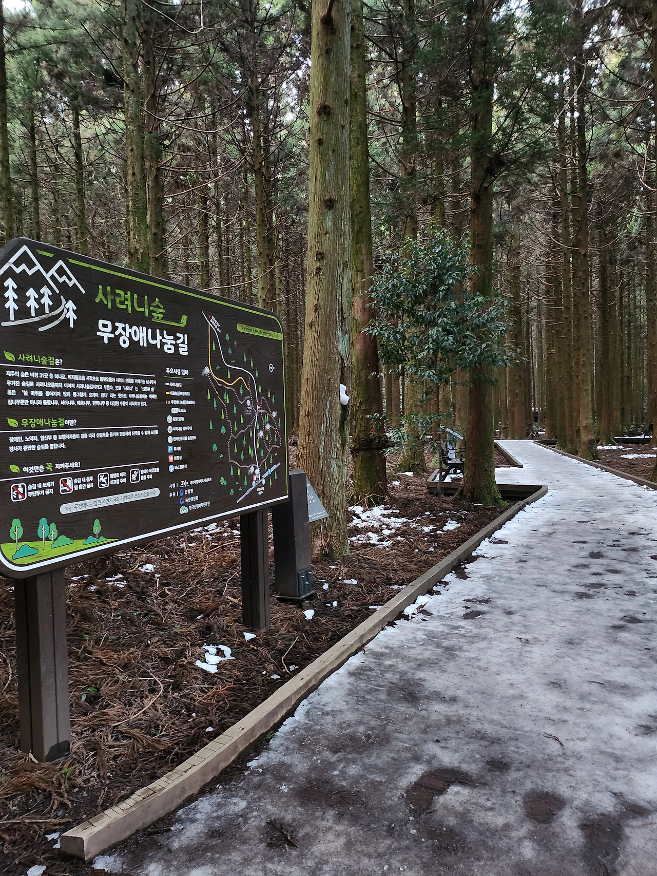 상큼한 눈바람에 편백향에도 취해볼 겸 치유의 숲으로 향했다.