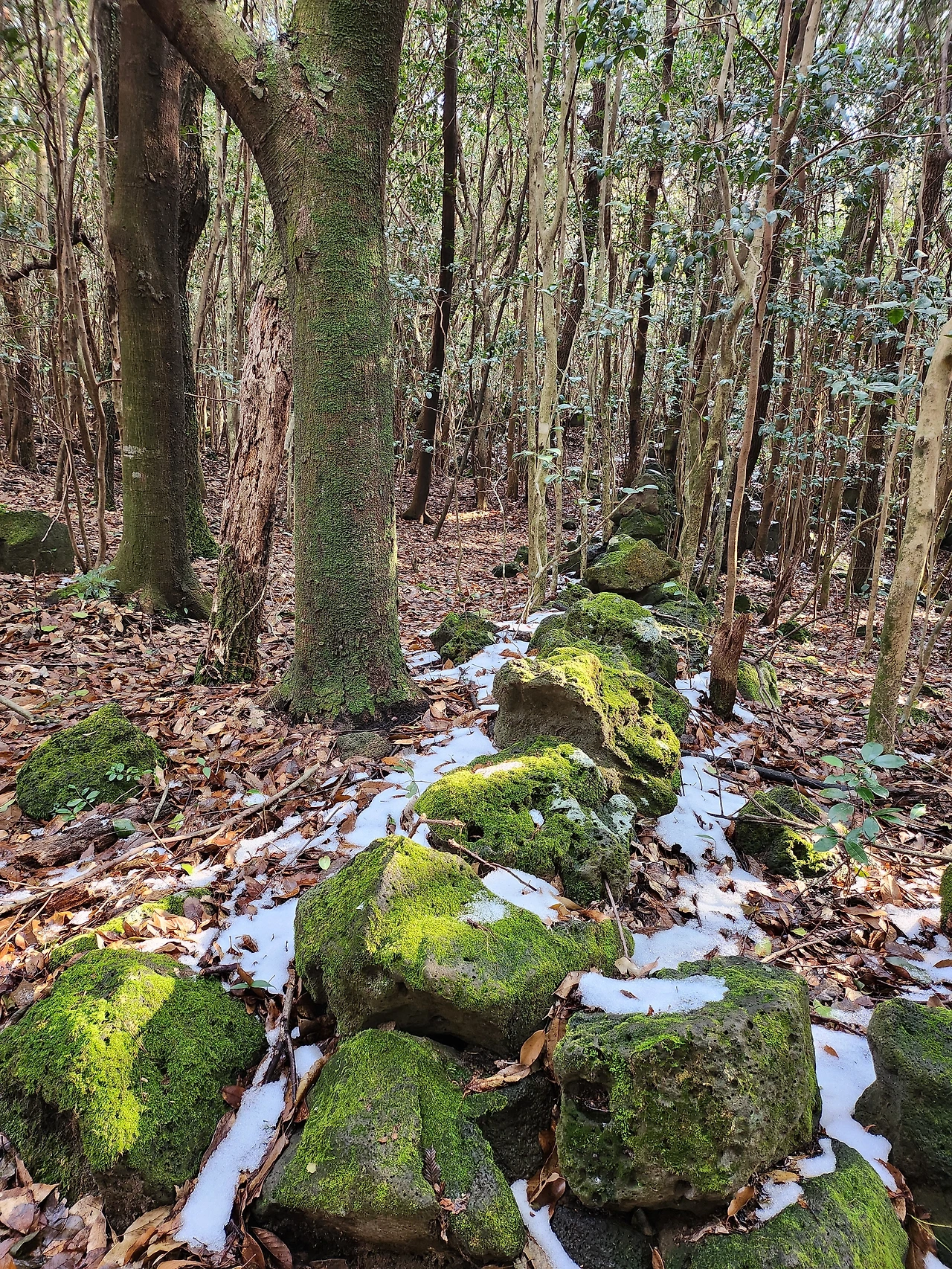 삼나무 빼곡히 들어차 어둑신한 숲, 무장애 숲길은 물론 미로의 숲길조차 눈이 쌓여 걸을 수가 없었다.