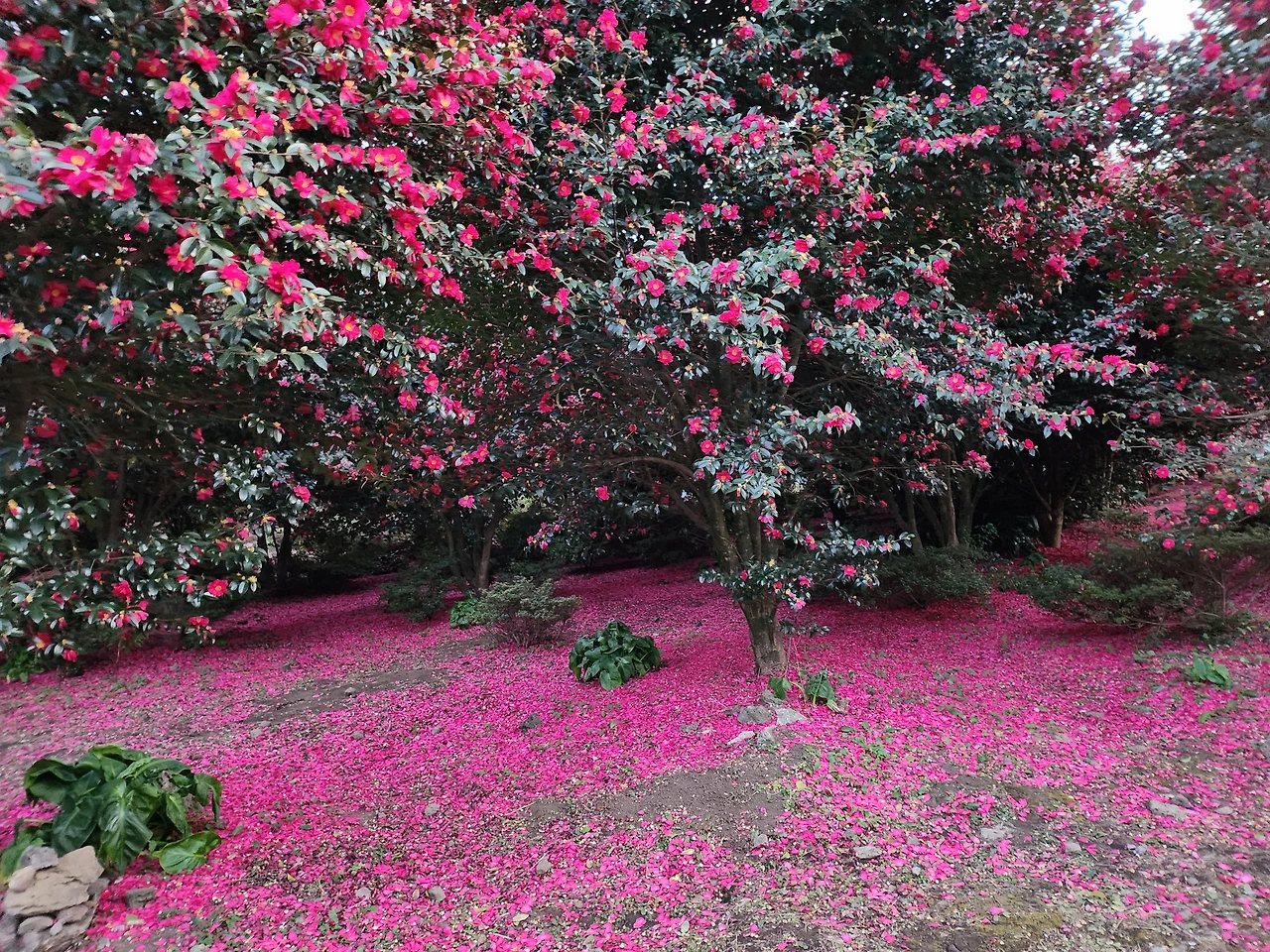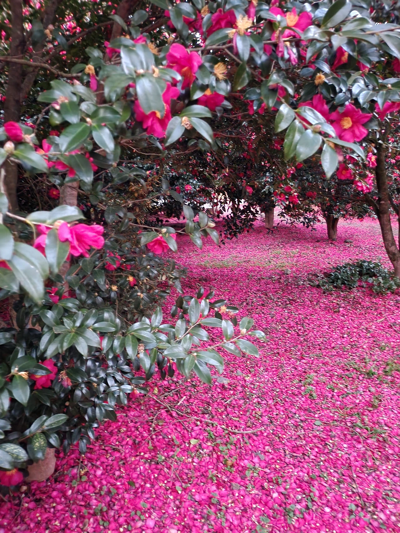위미리 동백정원 애기동백도 흐드러진 꽃잔치를 펼친 데다 낙화 역시 최상의 정경을 연출해 줬다.