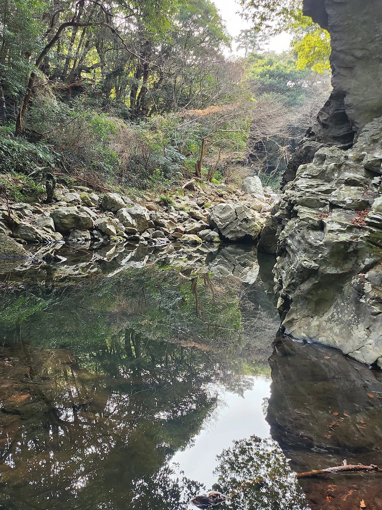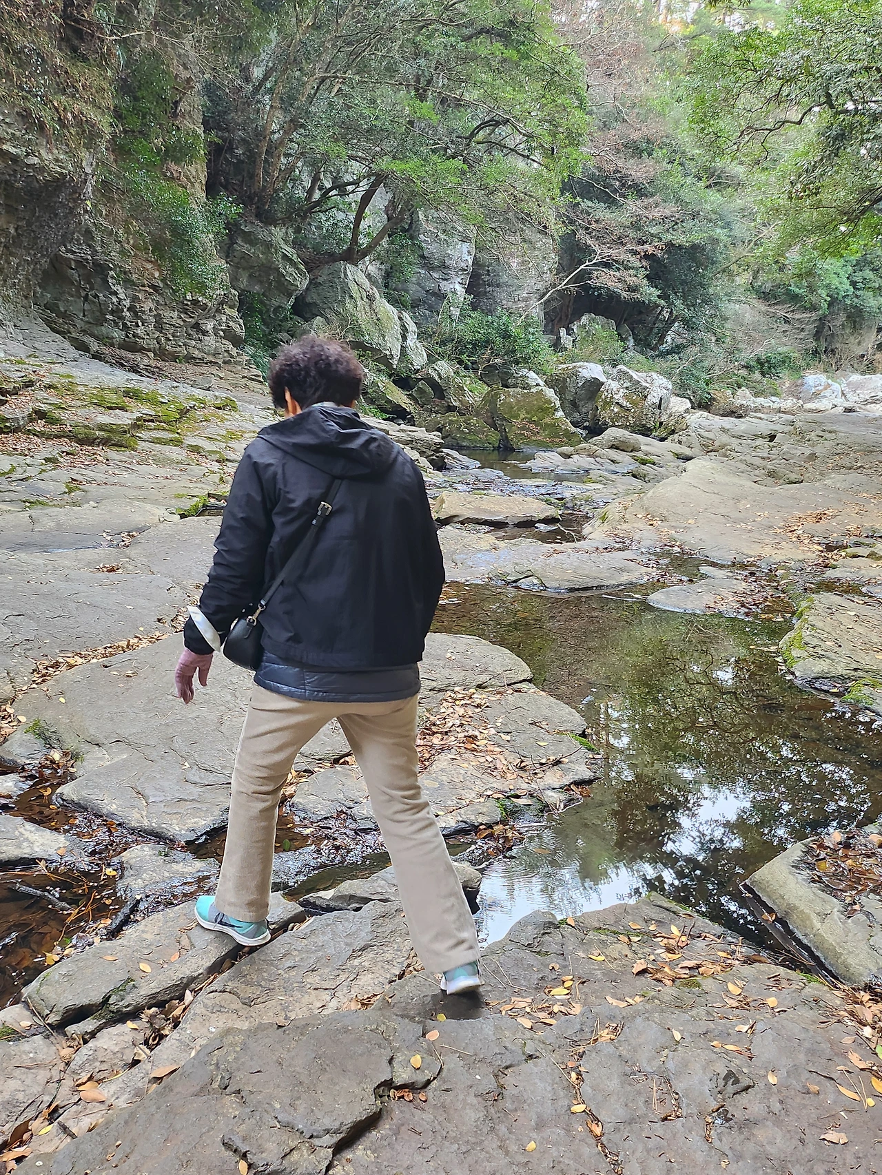 초입에서 만나게 되는 각진 주상절리며 바위그늘집이라는 자연동굴도 신기해하던 그녀는 계곡 안쪽 암반 사이를 애들처럼 건너뛰면서 좋아라 했다.