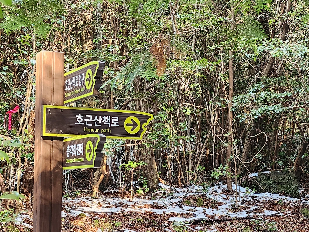 워낙 자주 온 곳이기에 샛길을 아니 그나마 다행, 정문이 아닌 호근산책로로 들어가 슬슬 숲길을 산책했다.