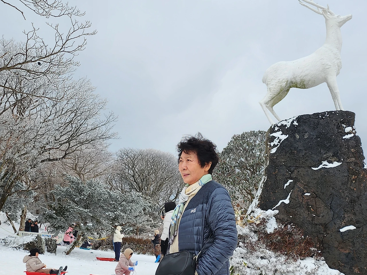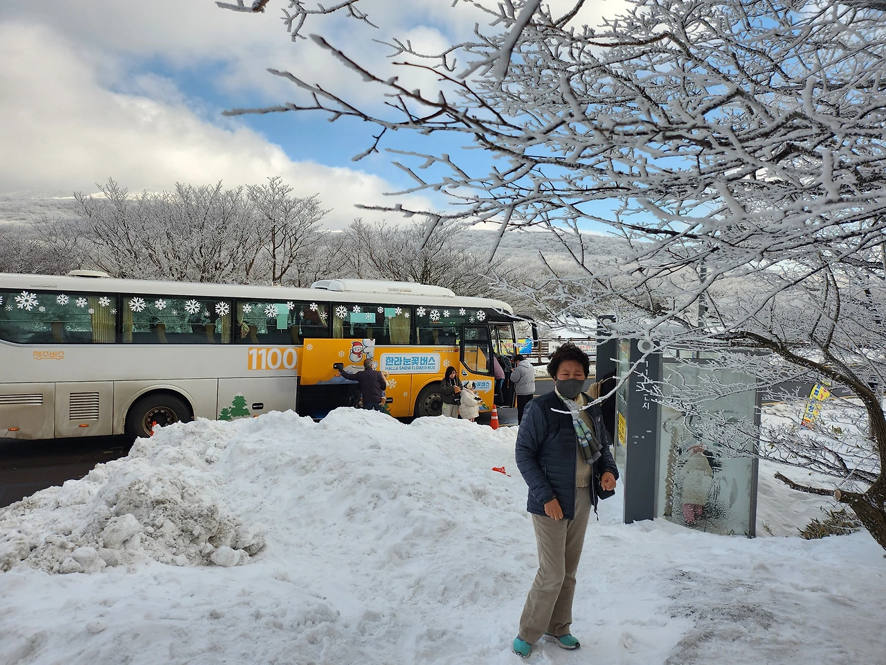 우리는 한라눈꽃버스를 타고 한라산 설화를 보러 갔다.