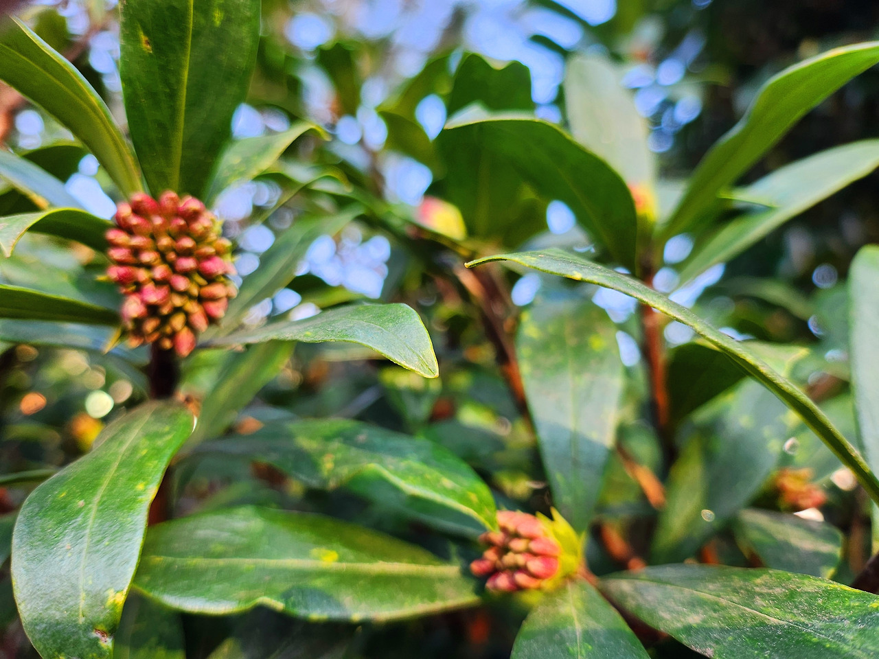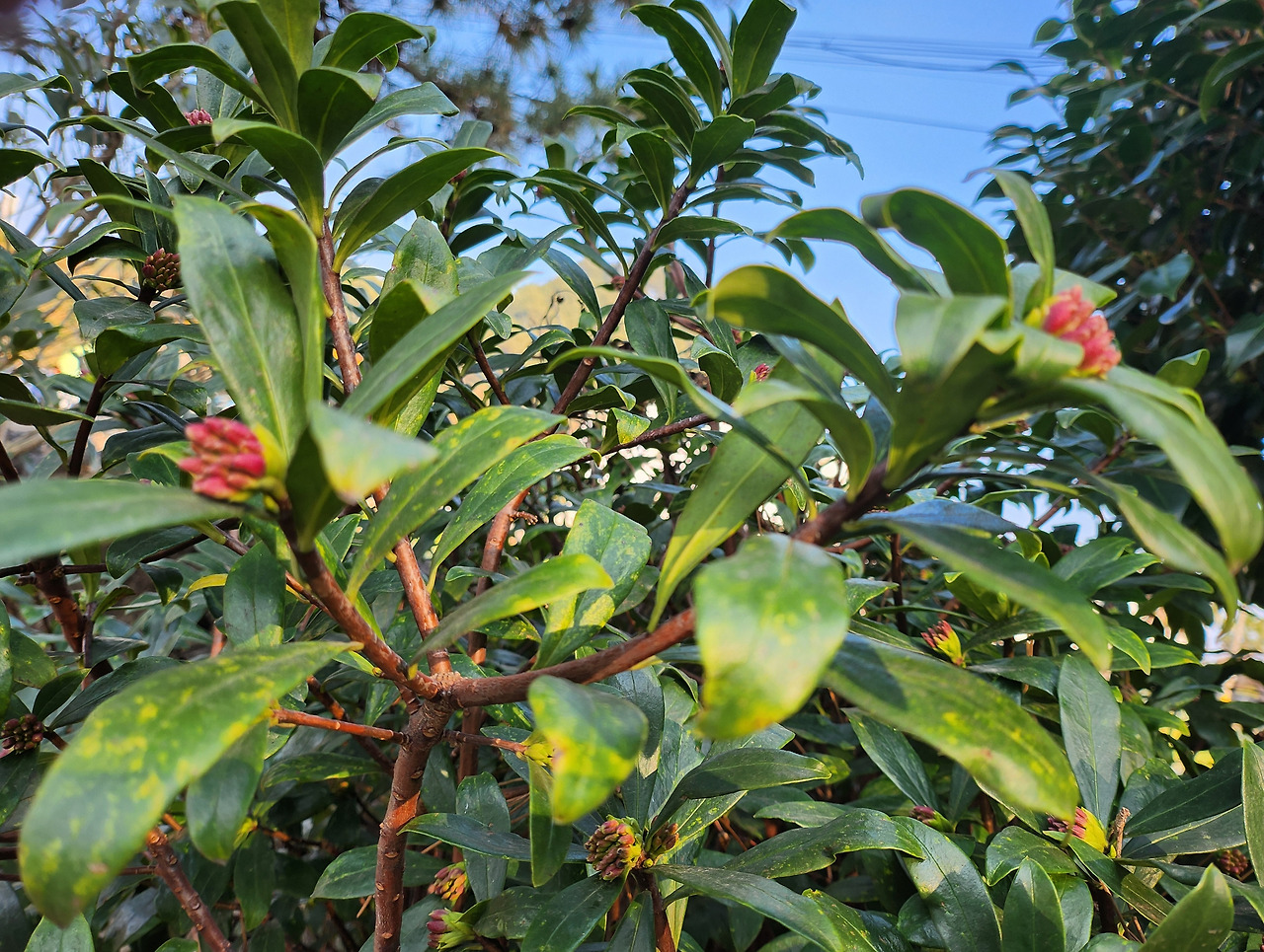 거처에서 볼 때와 달리 육덕 듬직한 것이 꽤 크게 보이는 섶섬이다. 마을 어딜 들어서나 애기동백 한창이고 어느새 비파꽃, 돌담 아래 수선화 피었으며 매화 봉오리 발그레 부풀었다. 천리향 무더기 소담스럽던 그 찻집은 시골마을이라 단번에 찾을 수 있었다. 하지만 내가 너무 조급했던가, 천리향 꽃송이들은 팥알만큼 단단한 채 송알송알 맺혀있을 따름.