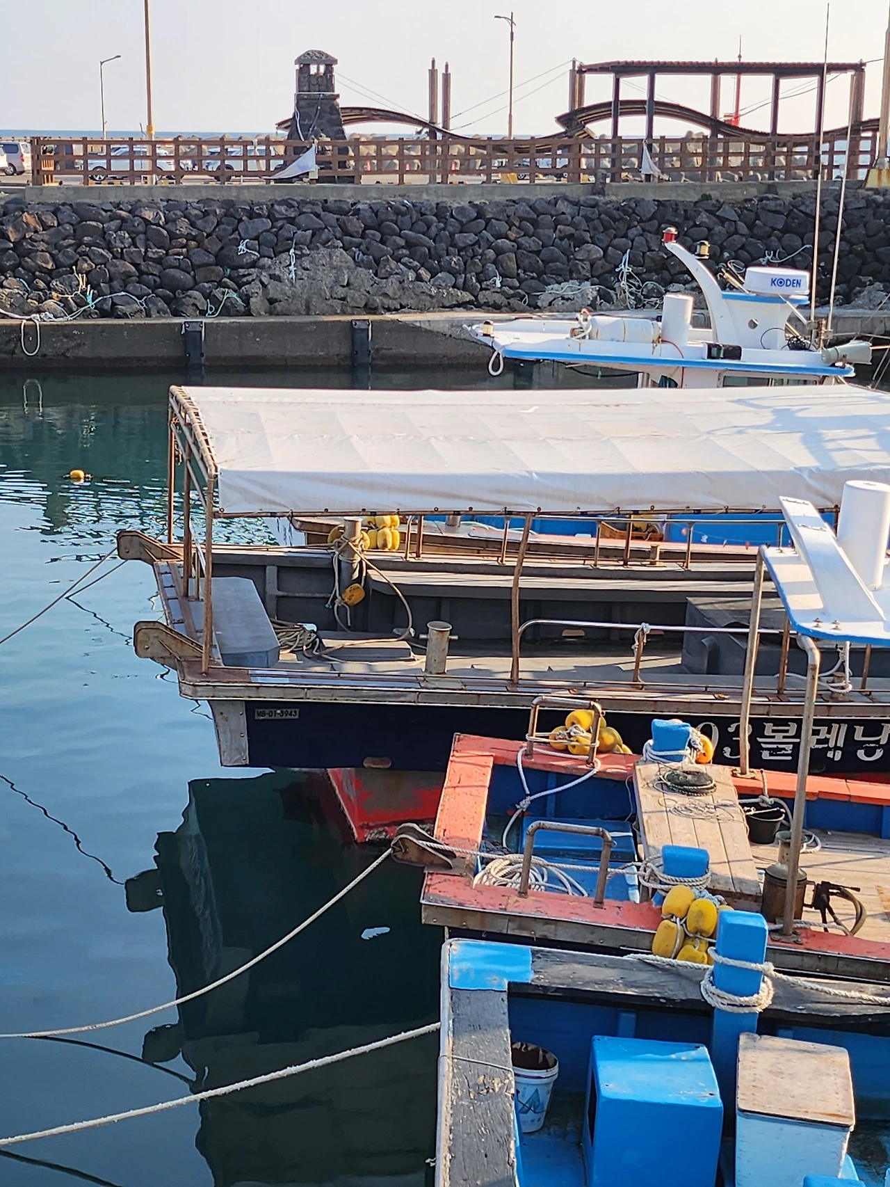 눈에 훤한 길, 바다 오른편에 끼고 휘적휘적 걷는다. 한 시간 여를 놀멍쉬멍 걷는다. 그렇게 닿은 보목항 초입이다. 바짝 섶섬이 다가와 앉는다.