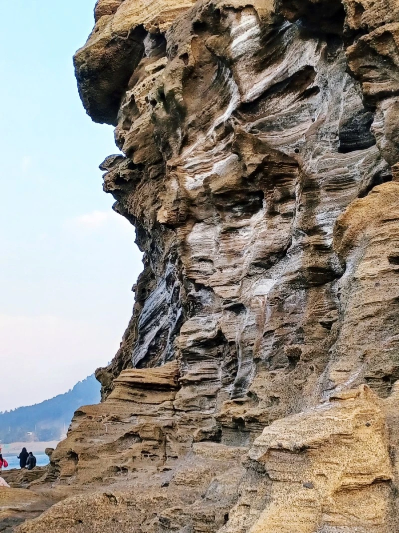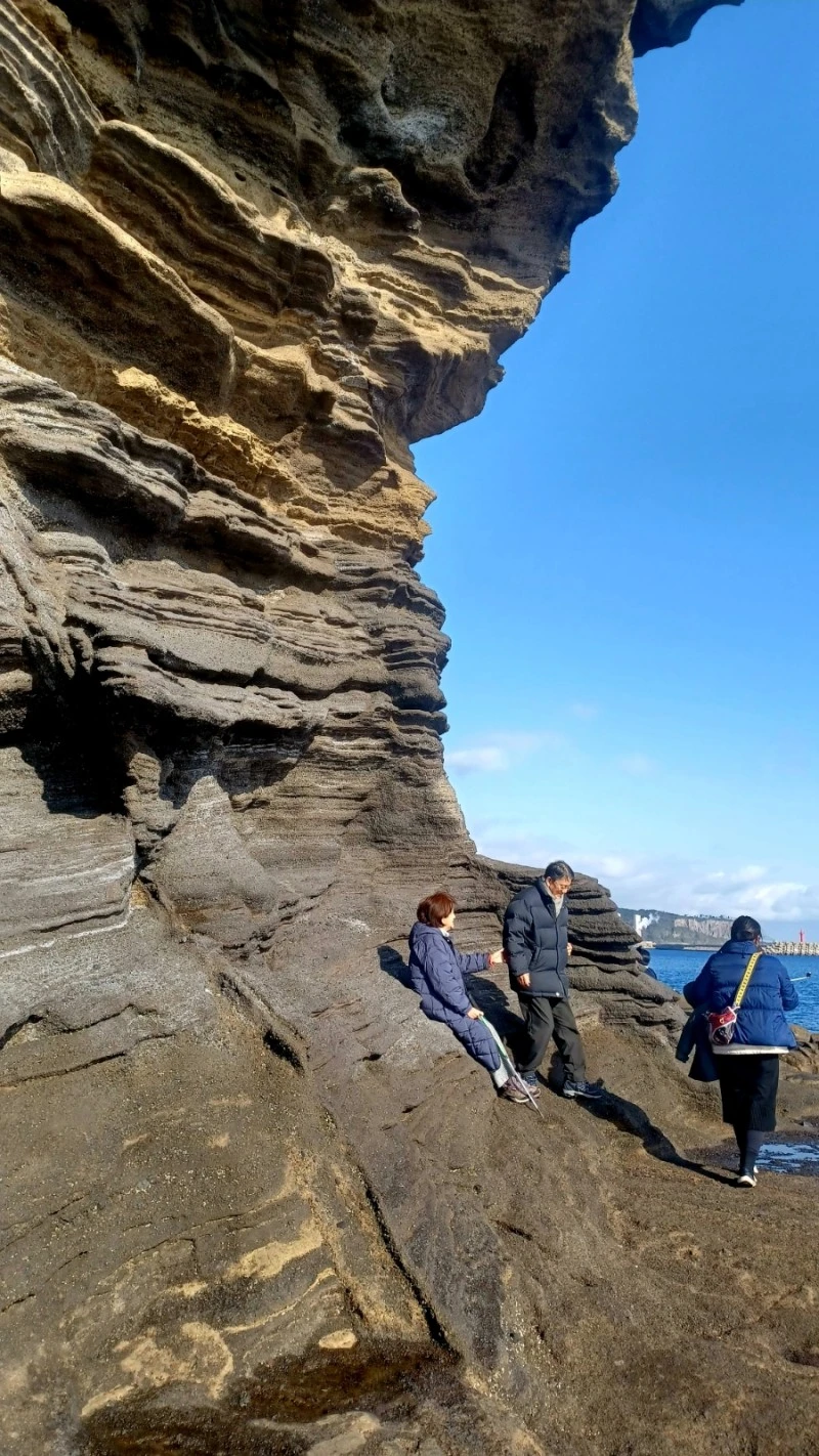 화산이 세 차례나 폭발하며 그때마다 분출된 화산쇄설물이 쌓여 형성된 암석해안인 셈.