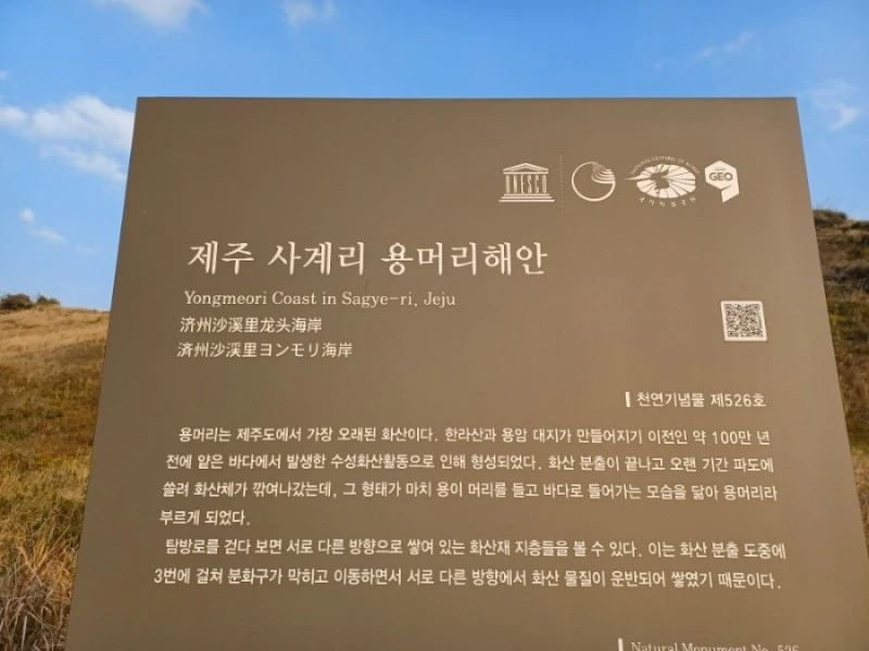 바닷속으로 들어가는 용 머리를 닮은, 제주도에서 가장 오래된 화산체다.