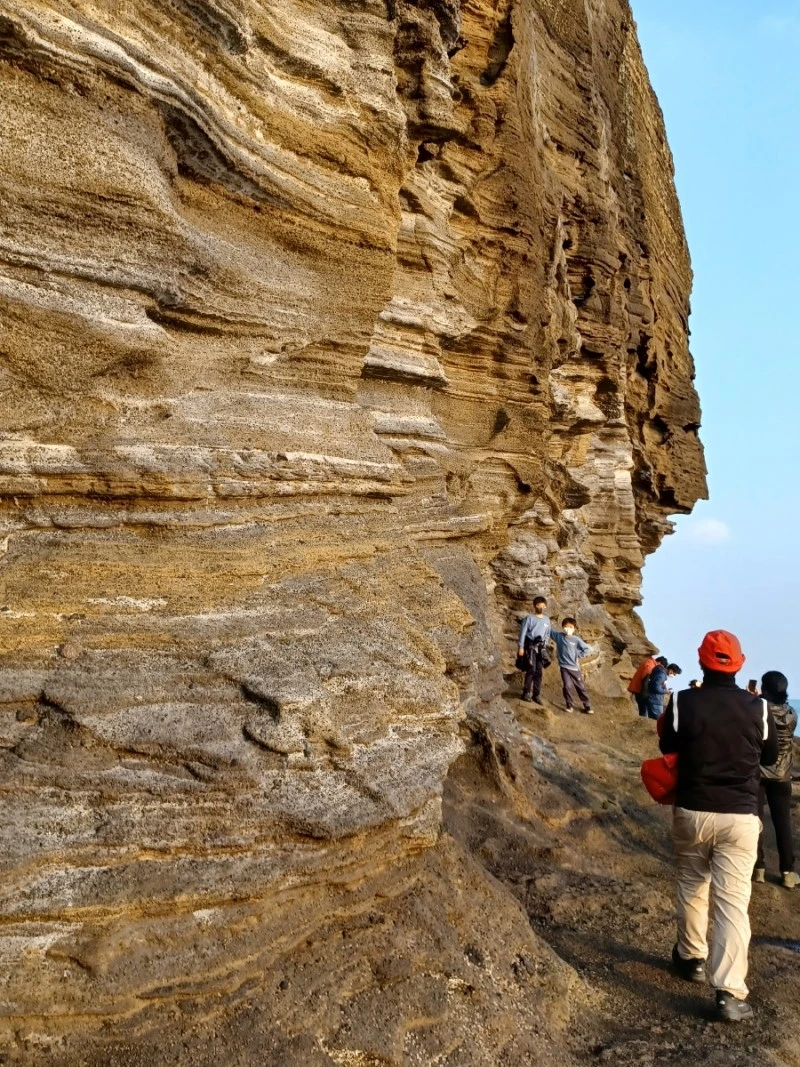 수백만 년 전 제주도 일대는 점토와 모래층이 바닷물에 드러났다 잠겼다 하는 얕은 바다였단다.