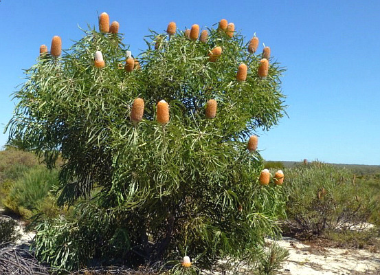 오스트레일리아는 한 번도 가 본 적 없는 대륙이다. 따라서 실제로 본 적이 없는 나무다. 그곳에서만 자생한다는 뱅크셔나무(Banksia tree). 비교적 거칠고 험준한 서부 오스트레일리아 지역 고유의 토종 관목이다. 1770년 조셉 뱅크스 (Joseph Banks) 일행이 호주에 상륙해서 처음 관찰해 기록을 남겼다. 보통 불규칙한 줄기와 가지가 낮게 퍼졌거나 지면에서 줄기를 똑바로 세운 관목도 있다고 한다. 평원의 삼림지대 숲에 서식하며 화관이 매우 화려해서 눈길 사로잡기에 지금은 정원수로 인기를 끈다는 나무다. 거기다 향까지 매우 좋아 꿀 생산을 위해 양봉가들이 가꾸기도 한다는 유용한 식물이다.