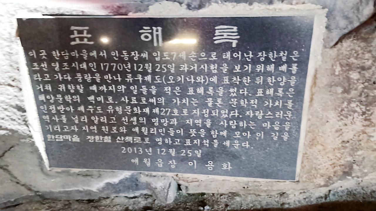 장한철은 영조 때 애월리에서 태어나 정조 때 대정 현감을 지낸 인물이다.