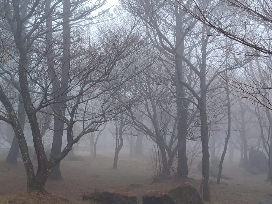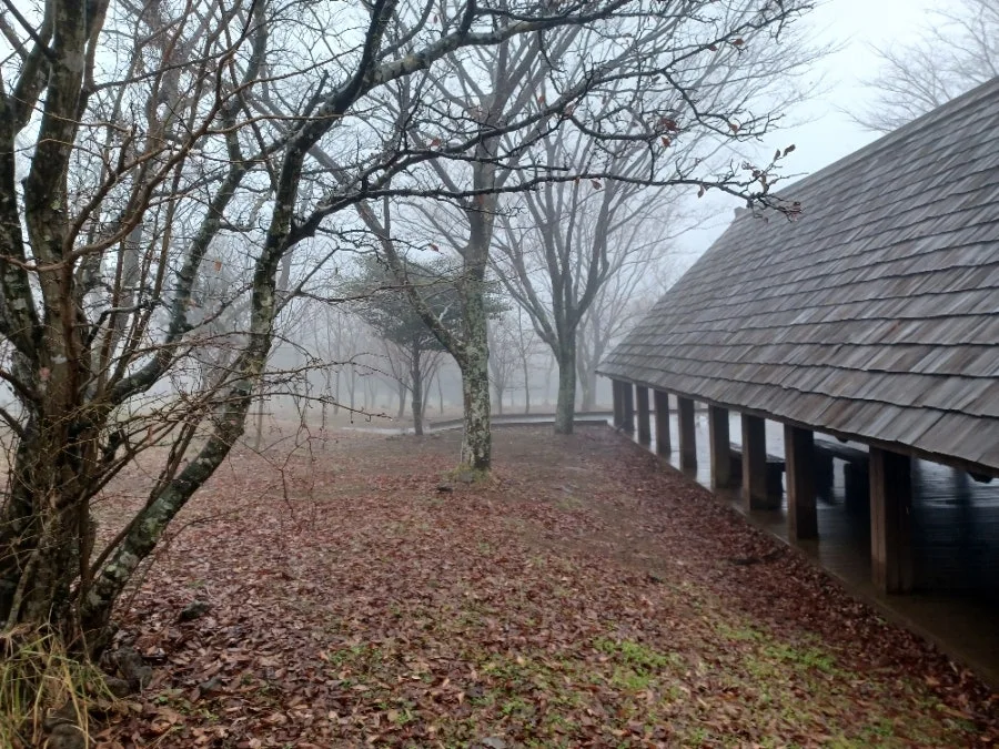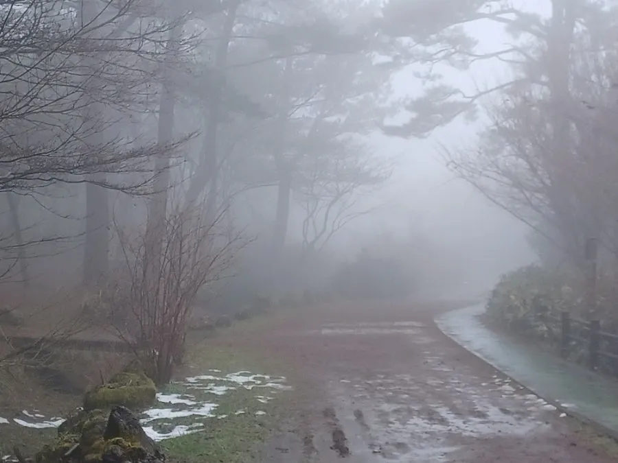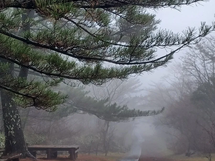 평소 곧잘 오르곤 한 전망대는 조망권 전무인 기상상태라 패스하고 차도로 향했다.
