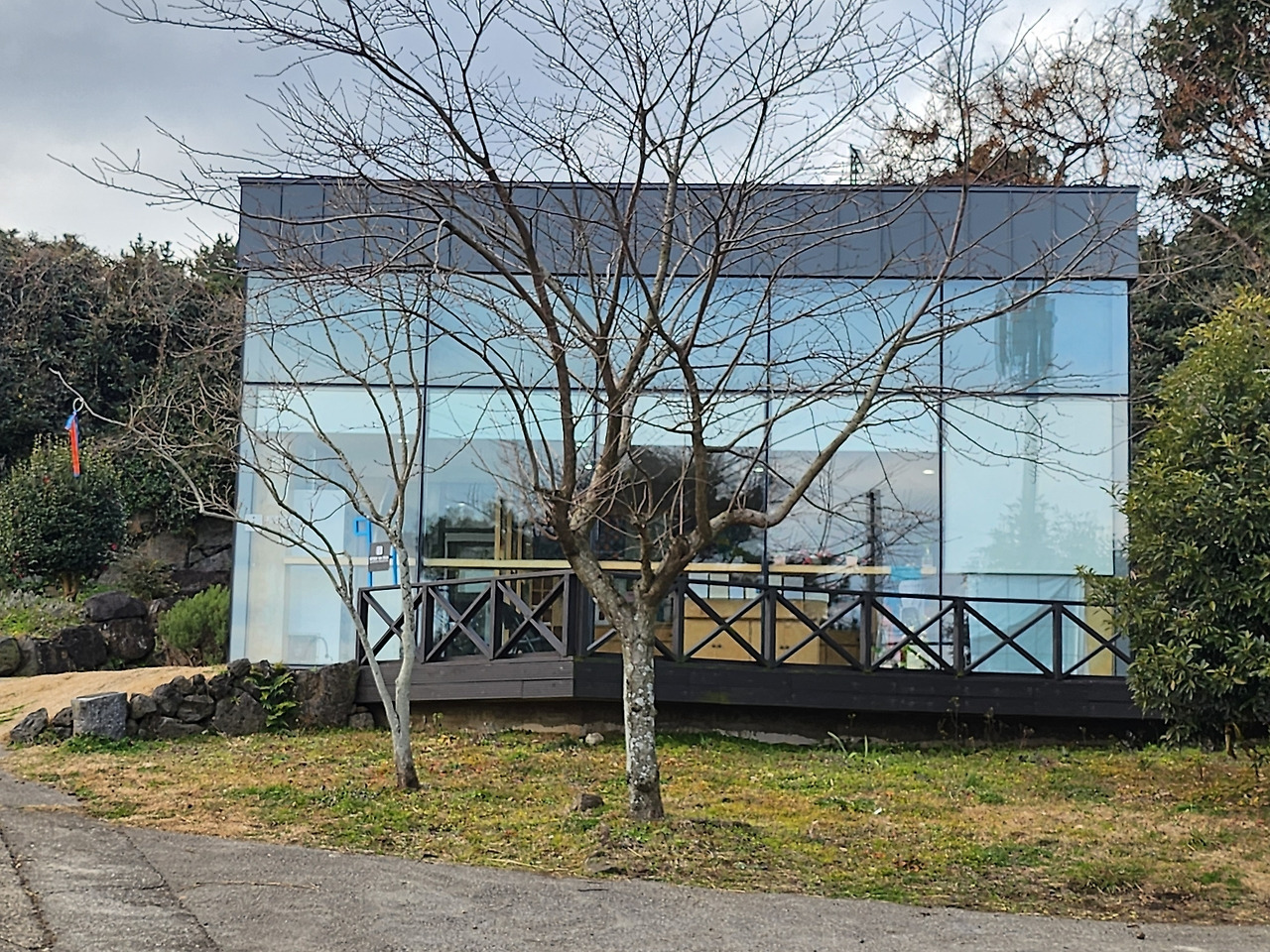 밭담 안에서 당근을 캐고 있는 농지를 지나자 모던한 유리집이 기다리고 있었지요.