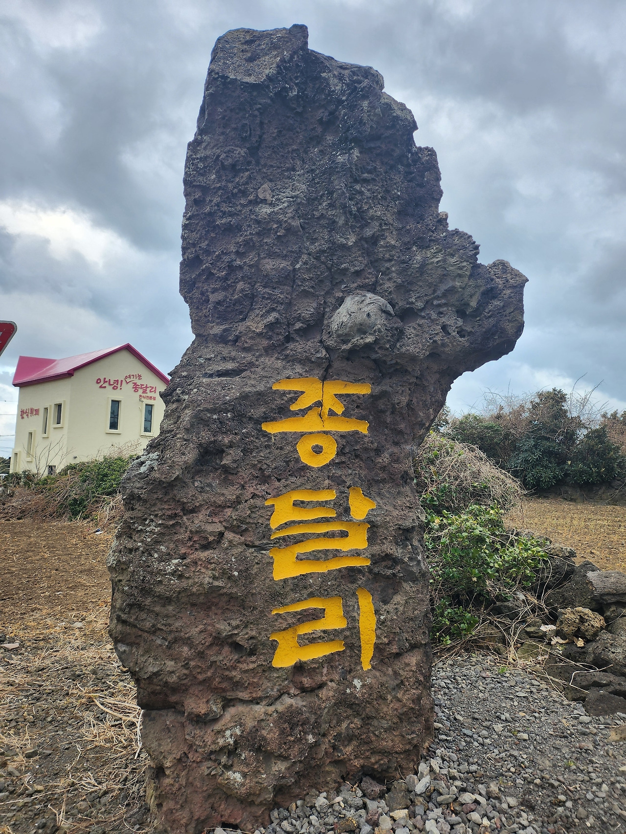 종달리 표지석이 우뚝 선 삼거리에 이르자 비로소 씽씽 달리는 차량들과 마을이 보이기 시작했어요.