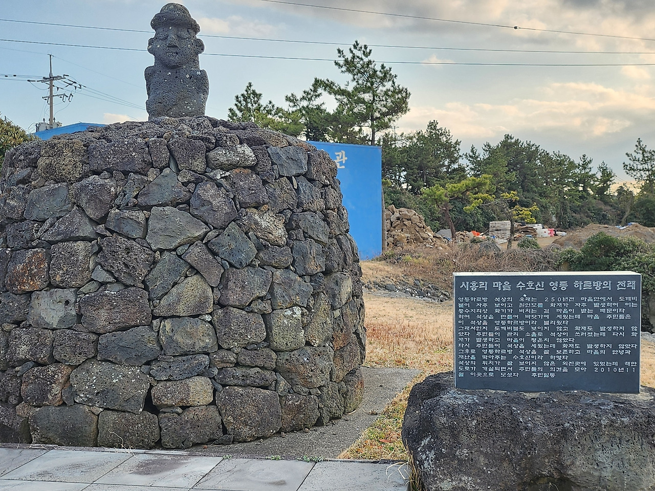 작은 어촌 건너편으로는 시흥마을 수호신인 영등 하르방 석상이 소년 같은 표정으로 서있었답니다.