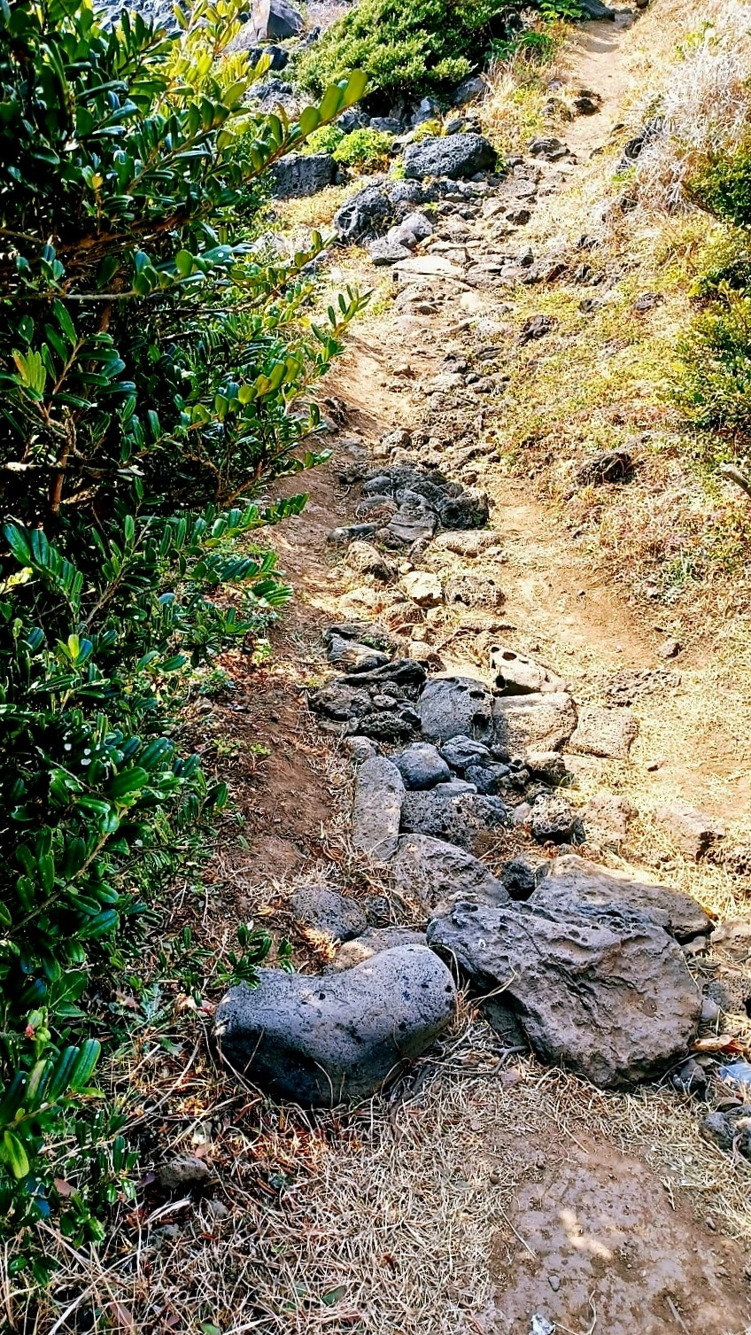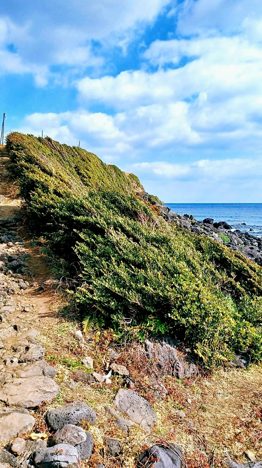 군락지 사이로 나있는 올레길 따라 걸으며 내려다본 바닷가.