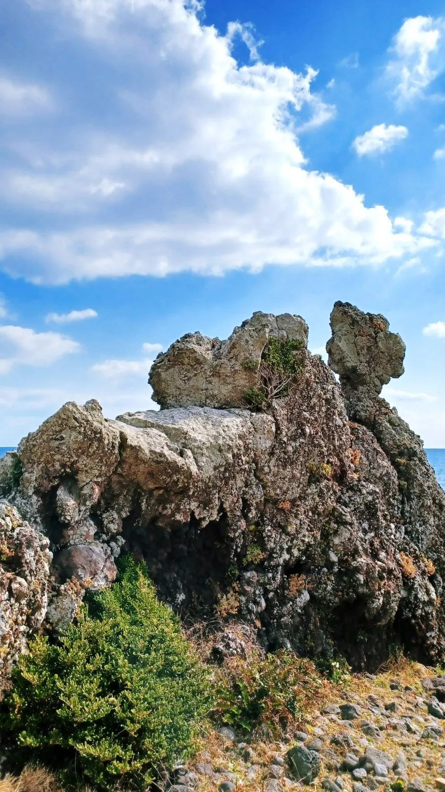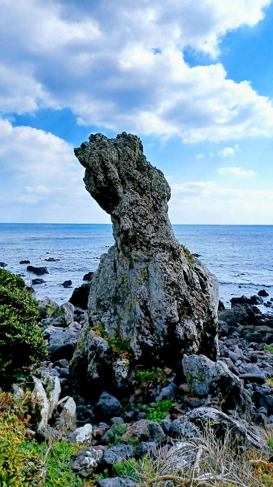 어떤 바위 형상은 마치 무거운 등짐에 짓눌린 곤고한 인생길에서 삶의 짐 잠시 부려놓고 먼 수평선 망연히 바라보는 사람 같았다.