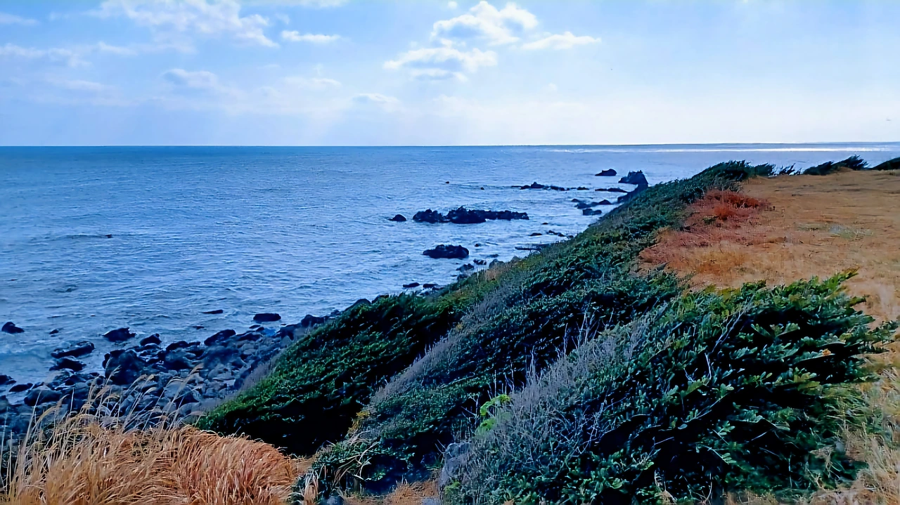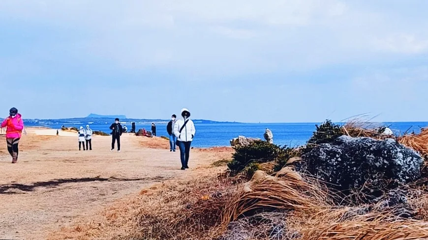 방풍림 조성조차 어려운 지형인 듯 오로지 해안가엔 군락 이룬 우묵사스레피만 언덕에 뒤덮여 있었다.