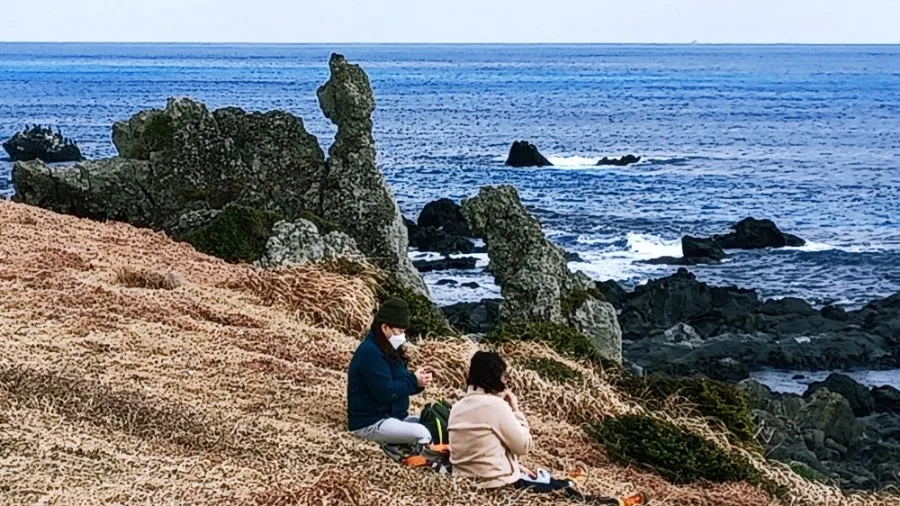 들쭉날쭉한 해암에 오도카니 앉아있는 가마우지도 강풍 기세에 쫄아든 듯 석상이듯 움직이지 않았다.
