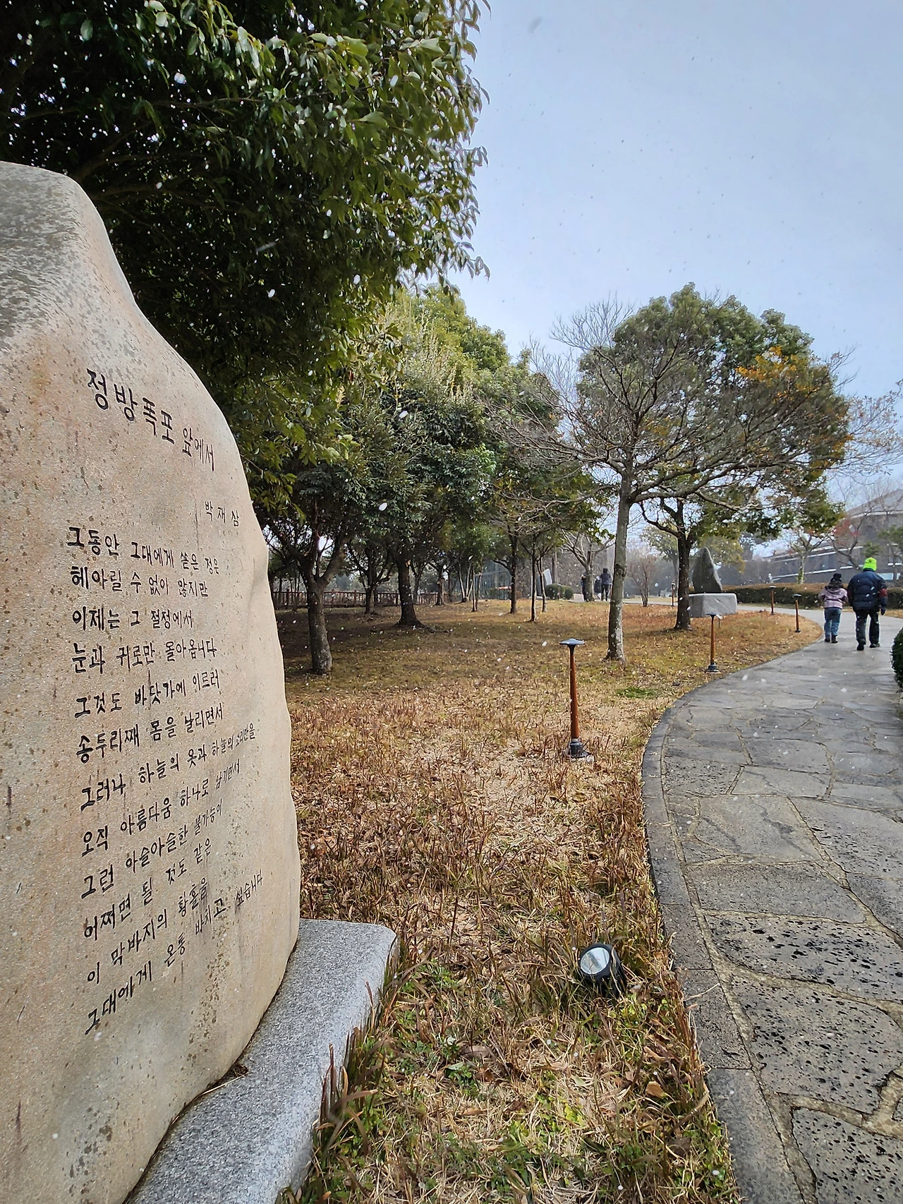 시공원답게 곳곳에 시비가 서있는 길, 대숲과 송림 위로 흰눈이 춤을 추며 날아다녔다.