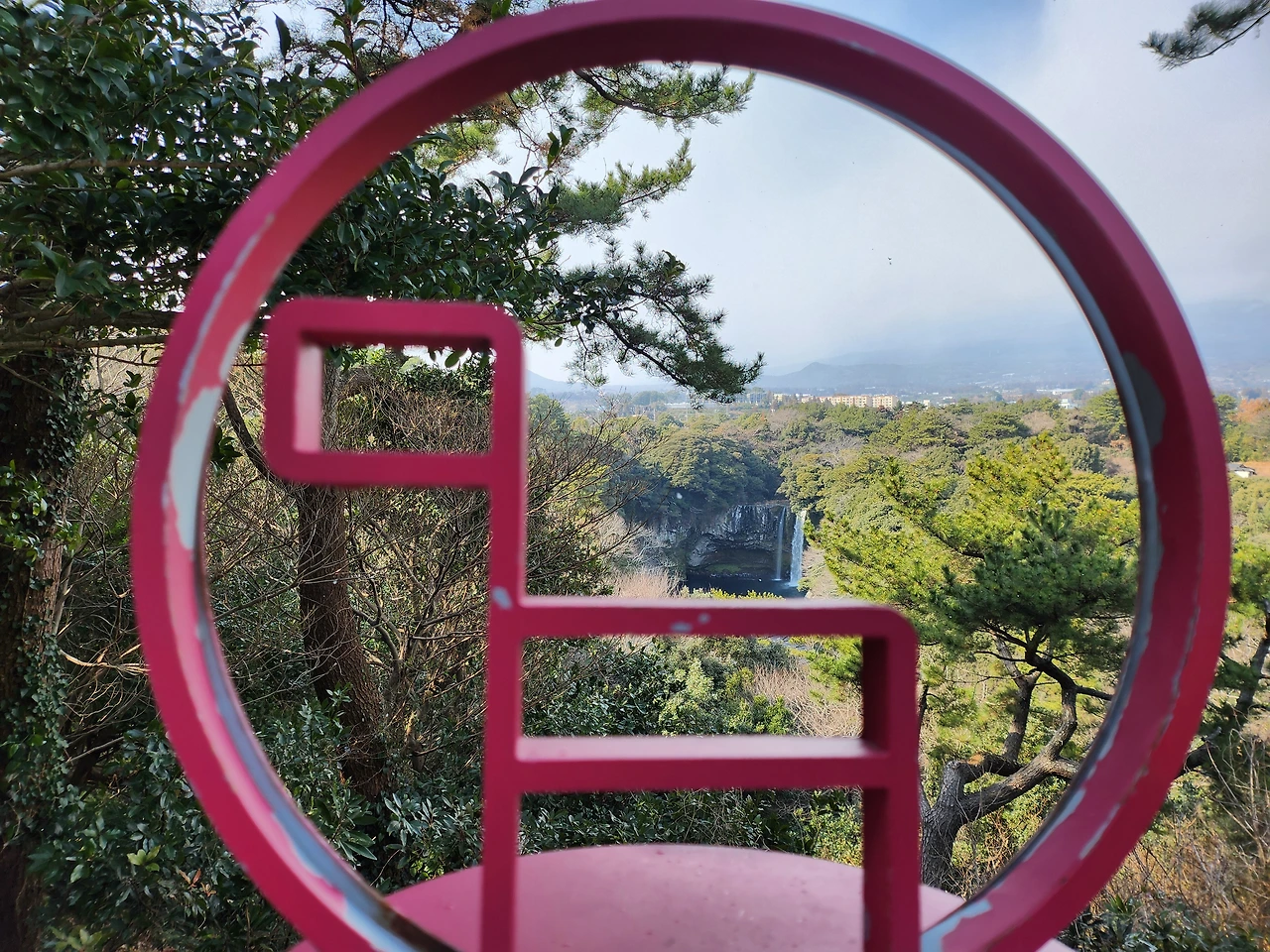 천지연폭포와 함께 한라산을 조망하기 더없이 좋은 장소이나 요 며칠 한라산은 자취 가뭇없어졌으니.