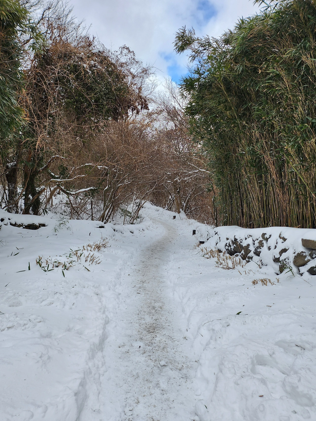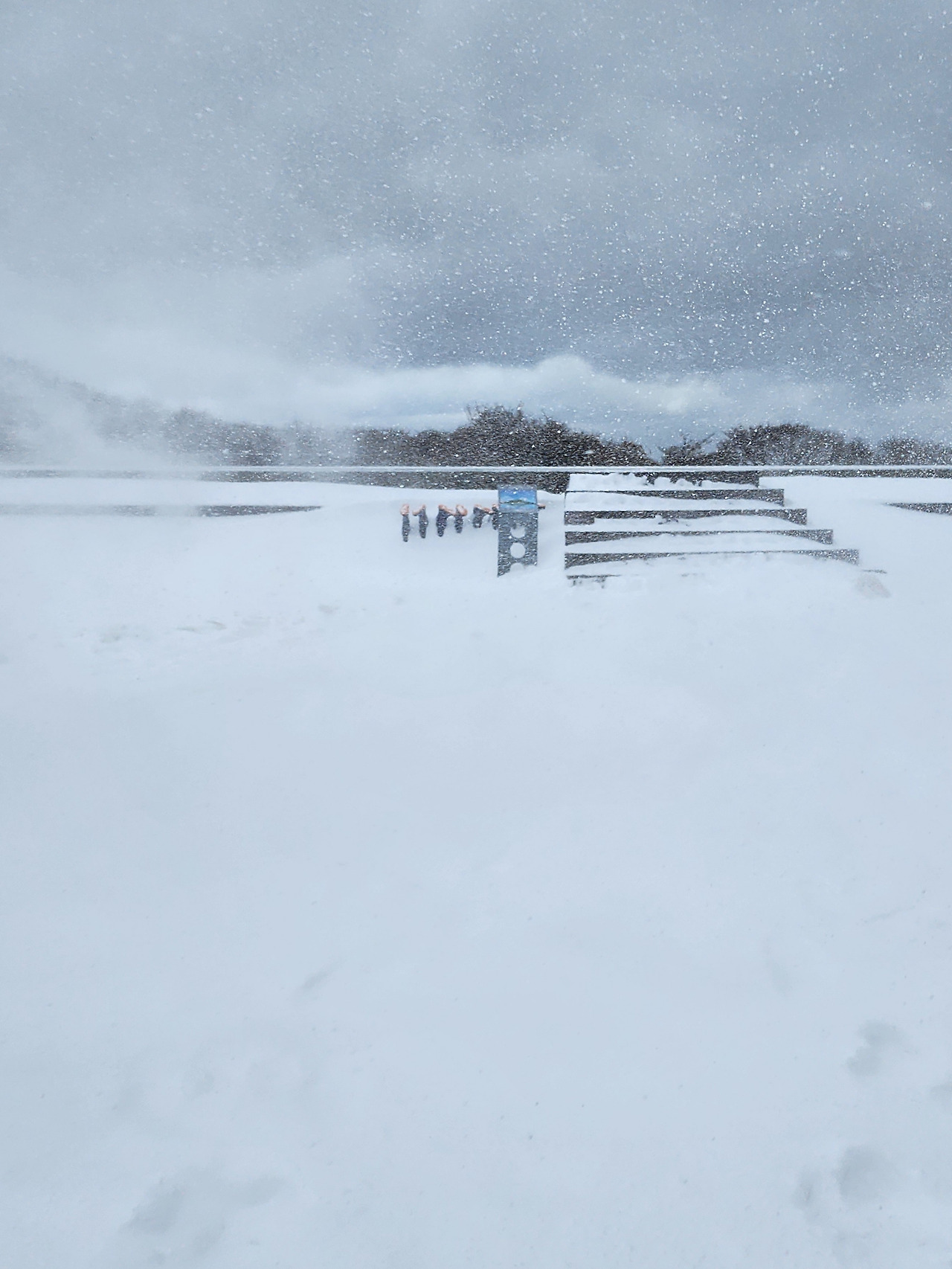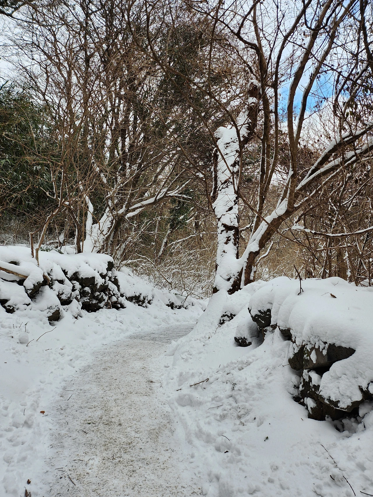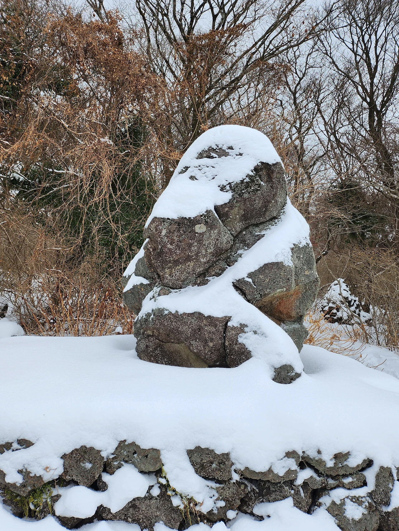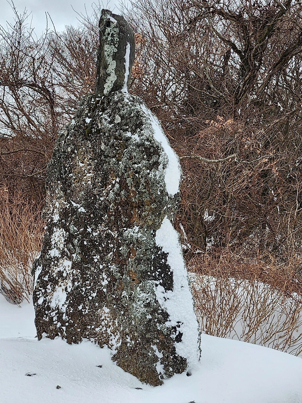 오직 야외에서 까만 현무암과 백설이 조응하며 빚어내는 흑백화폭만을 감상하기로.