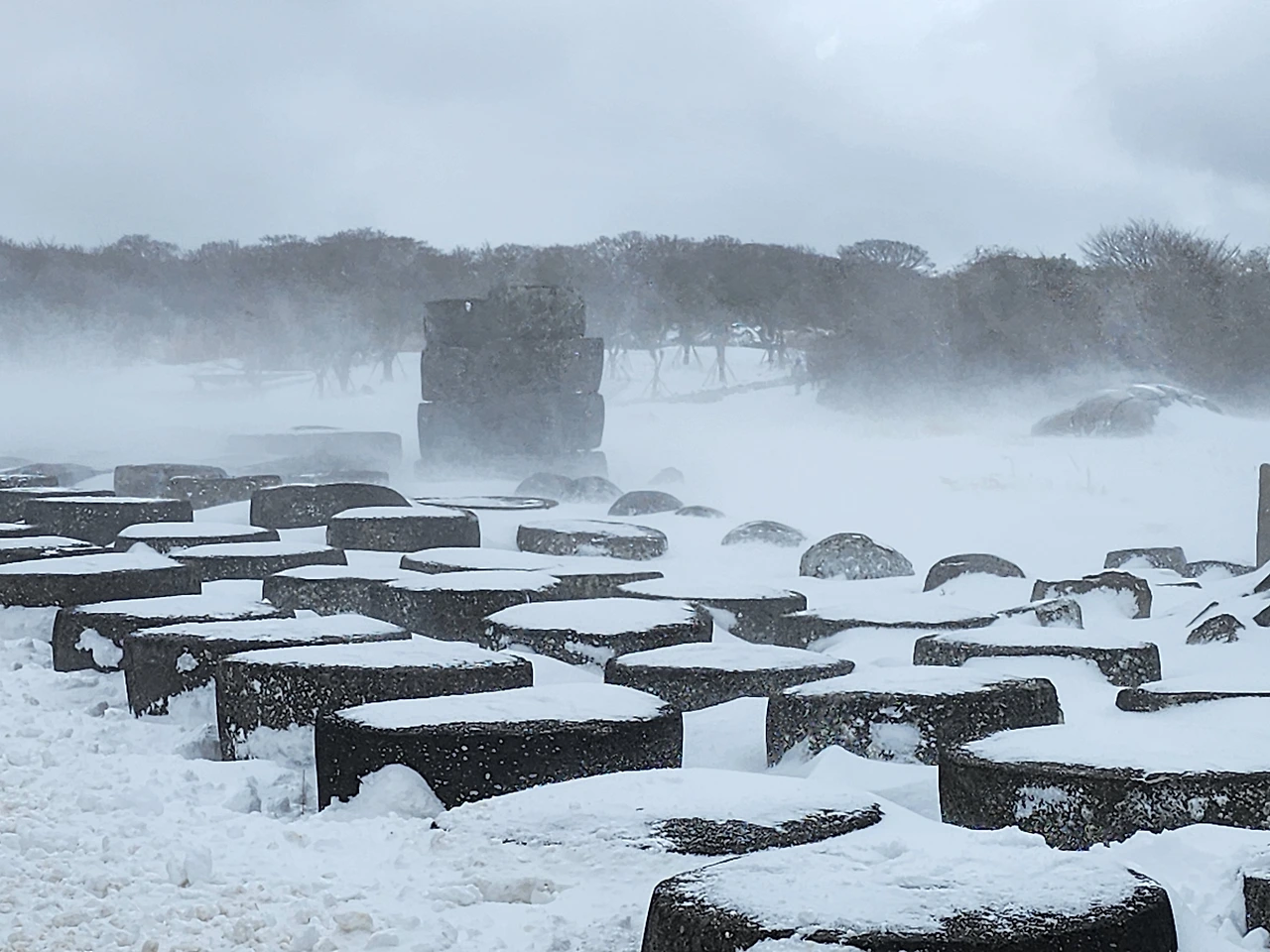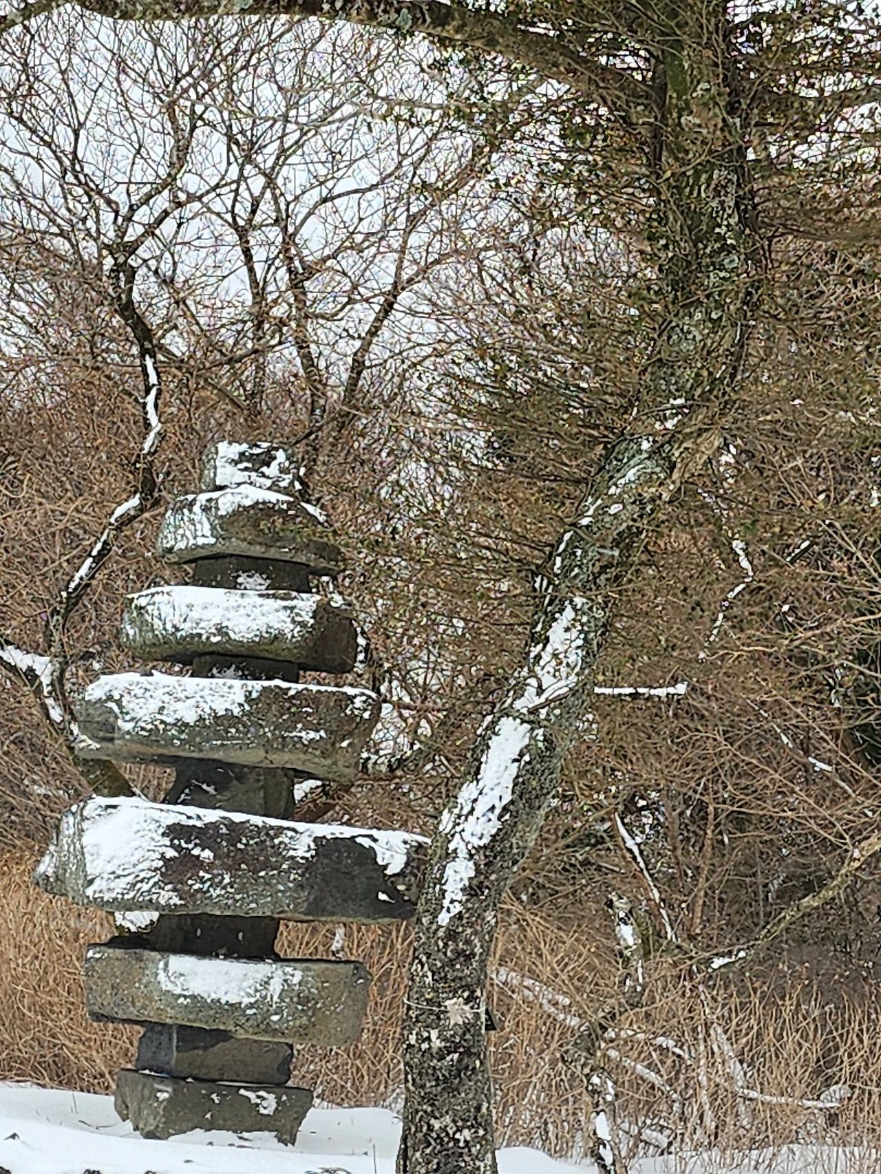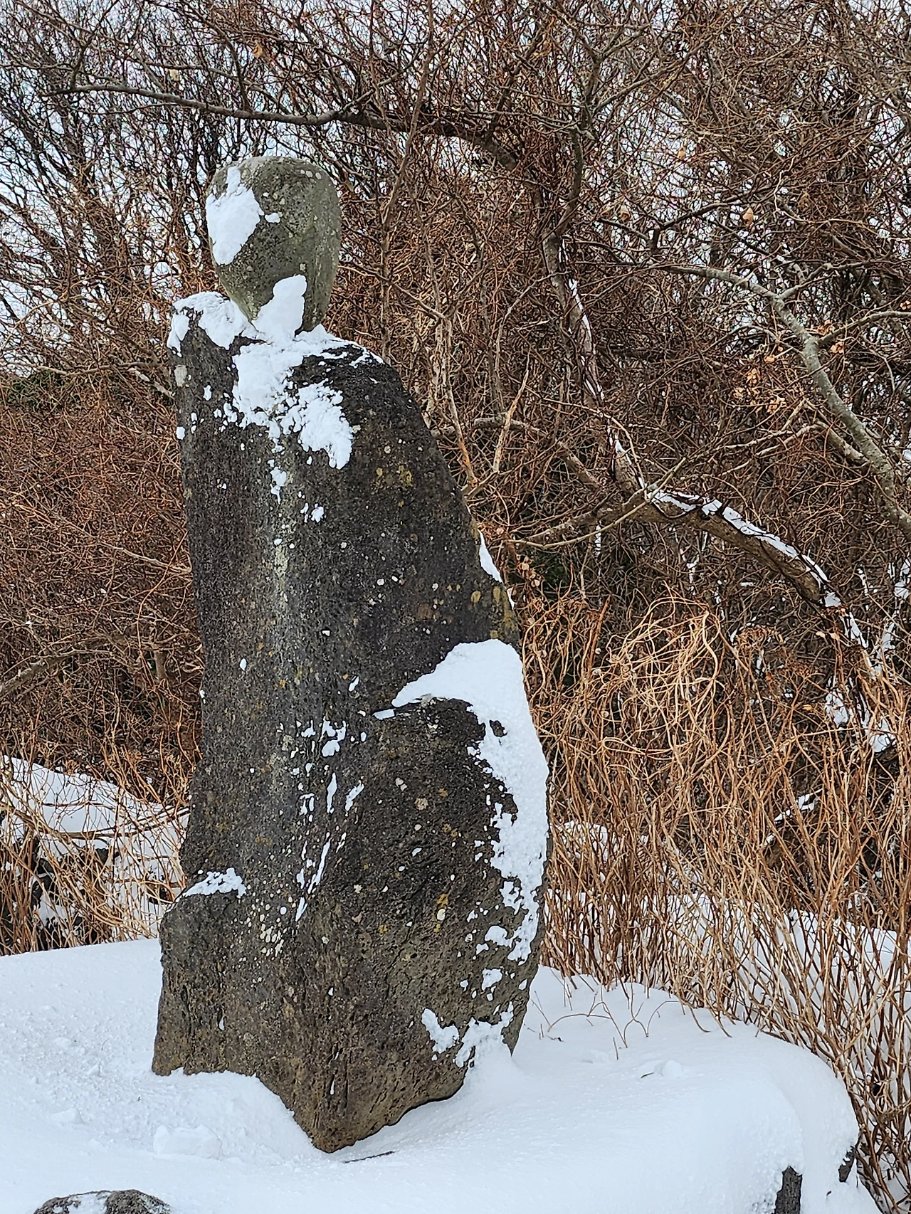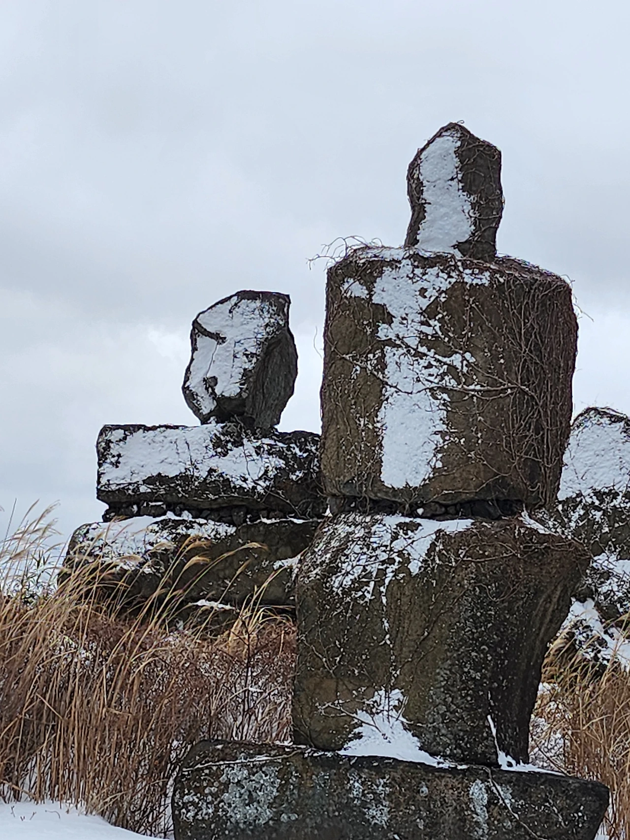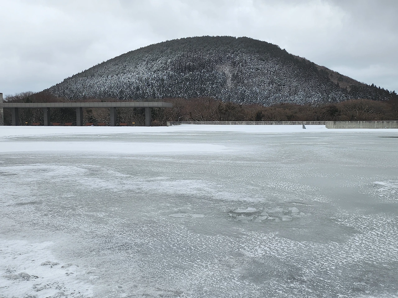 오직 야외에서 까만 현무암과 백설이 조응하며 빚어내는 흑백화폭만을 감상하기로.