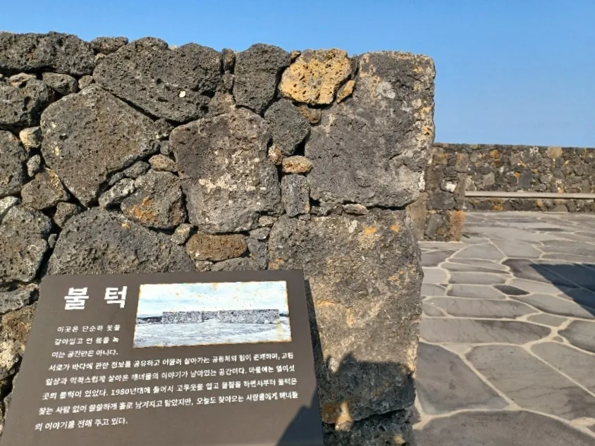 불턱은 해녀들 탈의실 겸 매운 추위 녹여주는 장소라 중요하다.