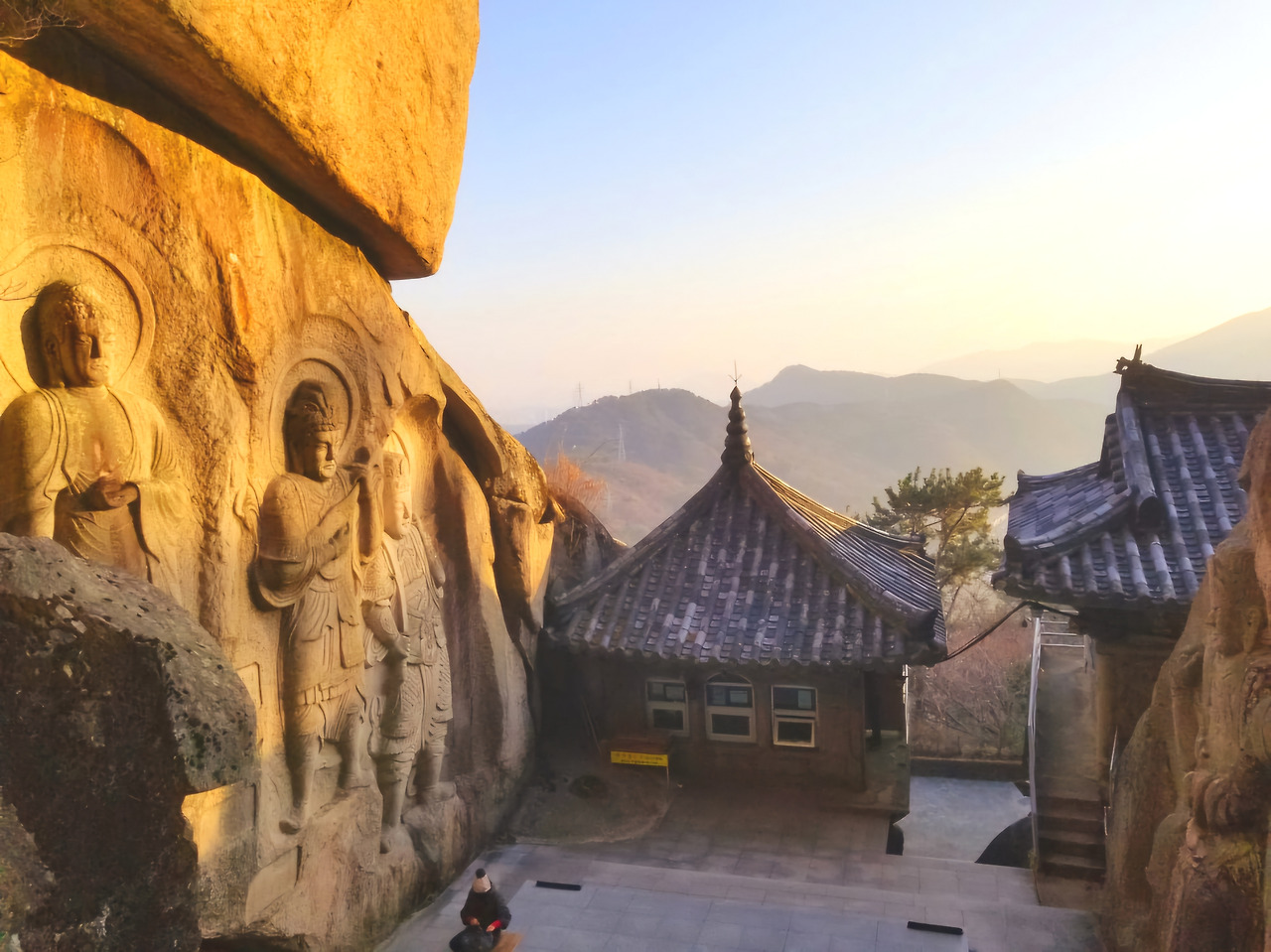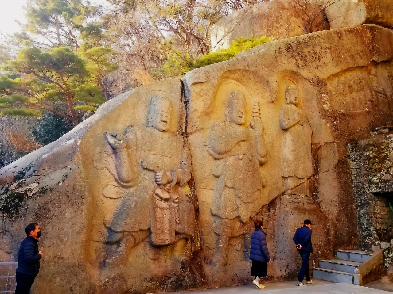 집채보다 더 큰 거대한 자연석에 새겨진 마애불상, 저절로 두 손 모아지며 고개 숙이게 만든다.