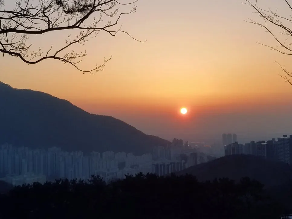 석불사를 내려오다 보니 저녁해가 쟁반만큼 유달리 크게 보이며 낙동강 줄기에 낙조 황금빛으로 내쏟고 있었다. 2021