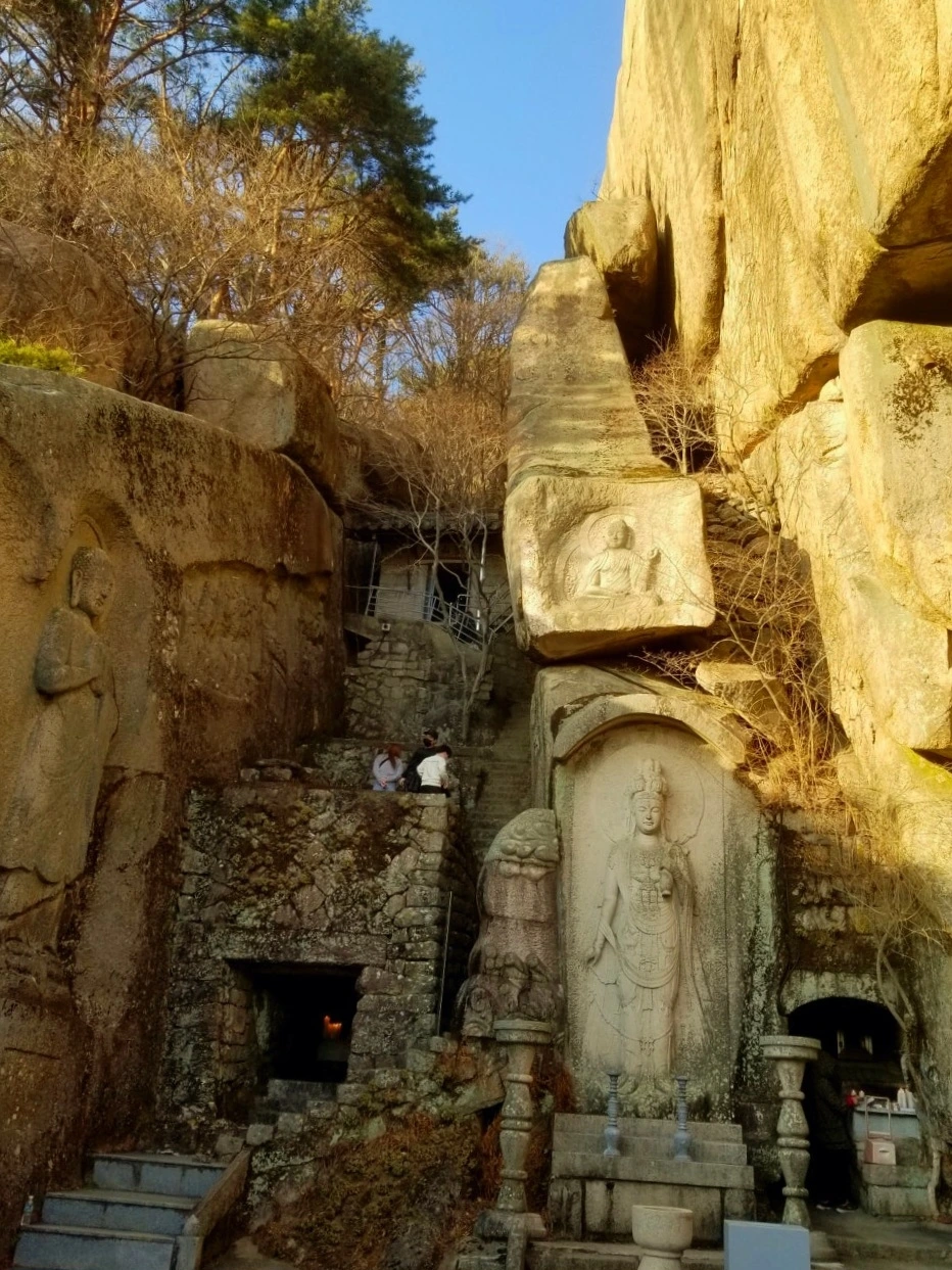 동굴 안에 모신 관음상을 지나 다리 후들거릴 정도로 가파르고 조붓한 돌층계를 올라간다.