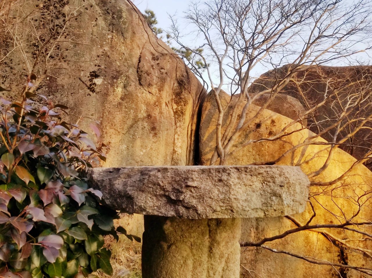 위엄 어린 바위 앞 정원 한편에, 새와 다람쥐를 위한 헌식돌조차 꼼꼼하게 다듬은 흔적 다사로워 한참을 지켜보게 했었지.
