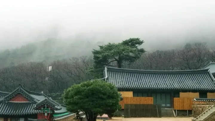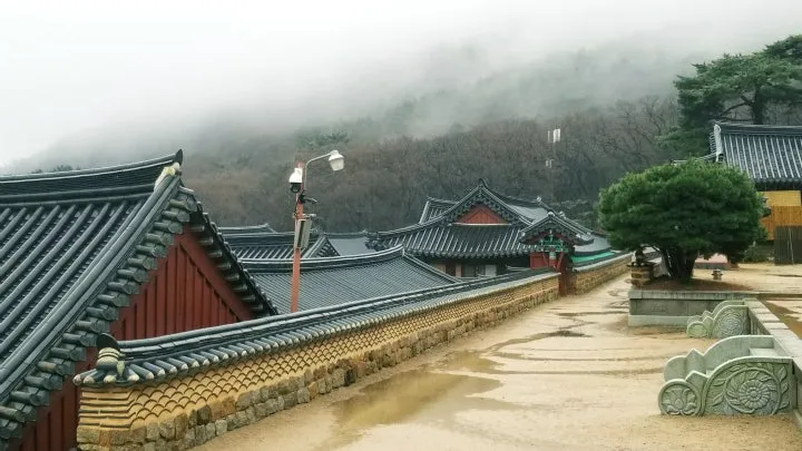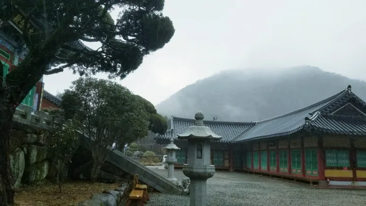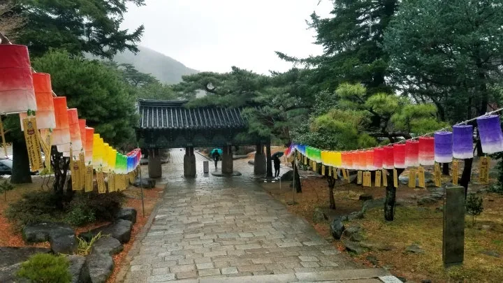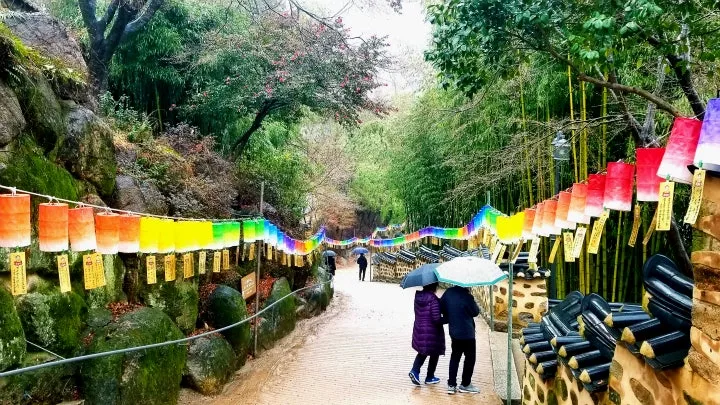 정월 초하루 설날을 기리는 색색 지등(紙燈)이 안개비 자욱한 금정산의 무채색을 밝혀줘 범어사는 빗속에도 환했다.