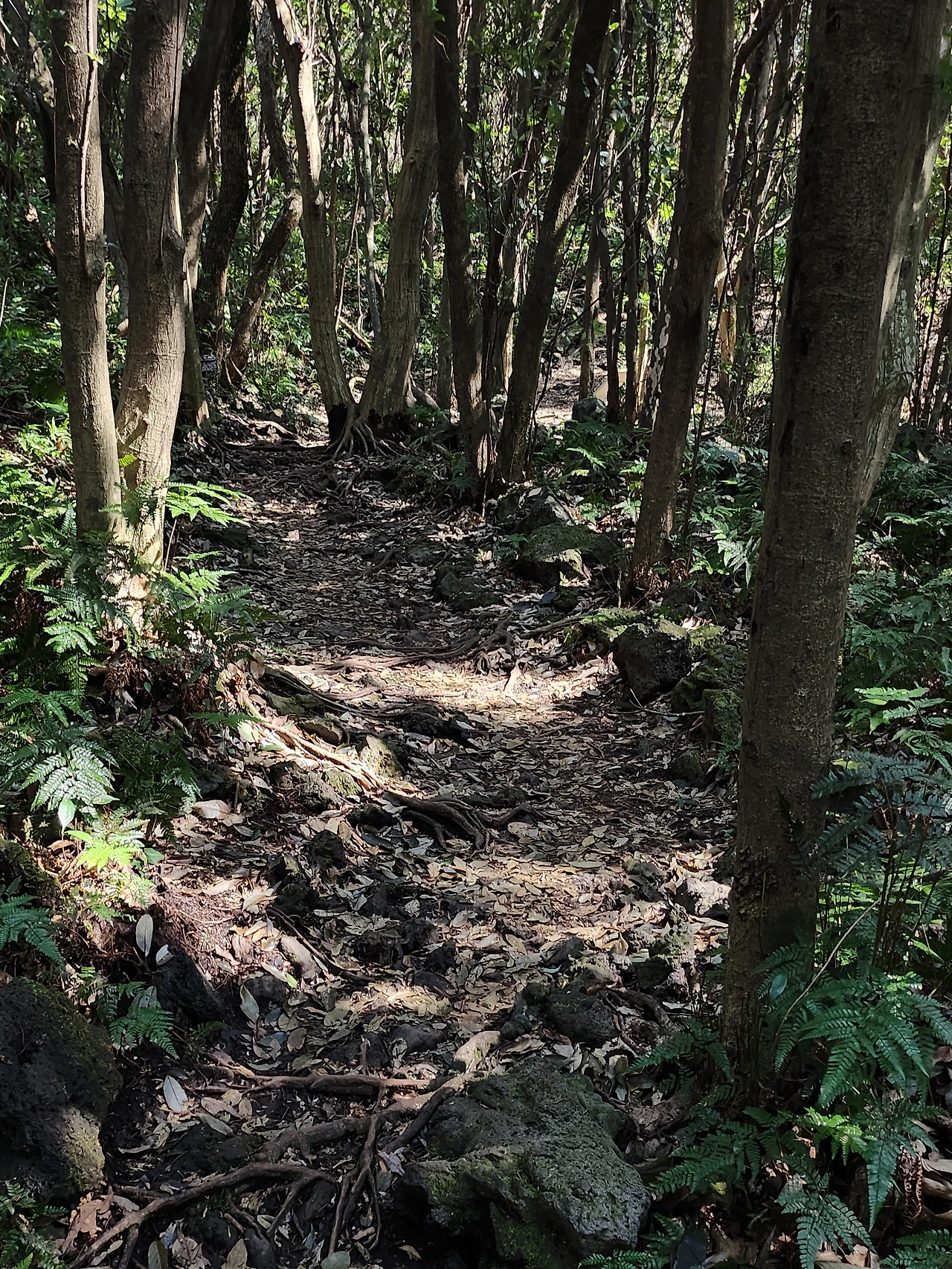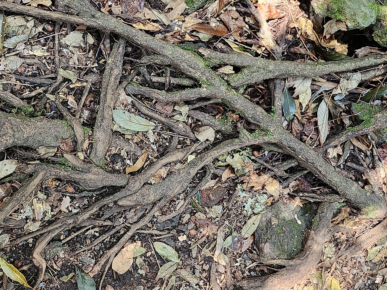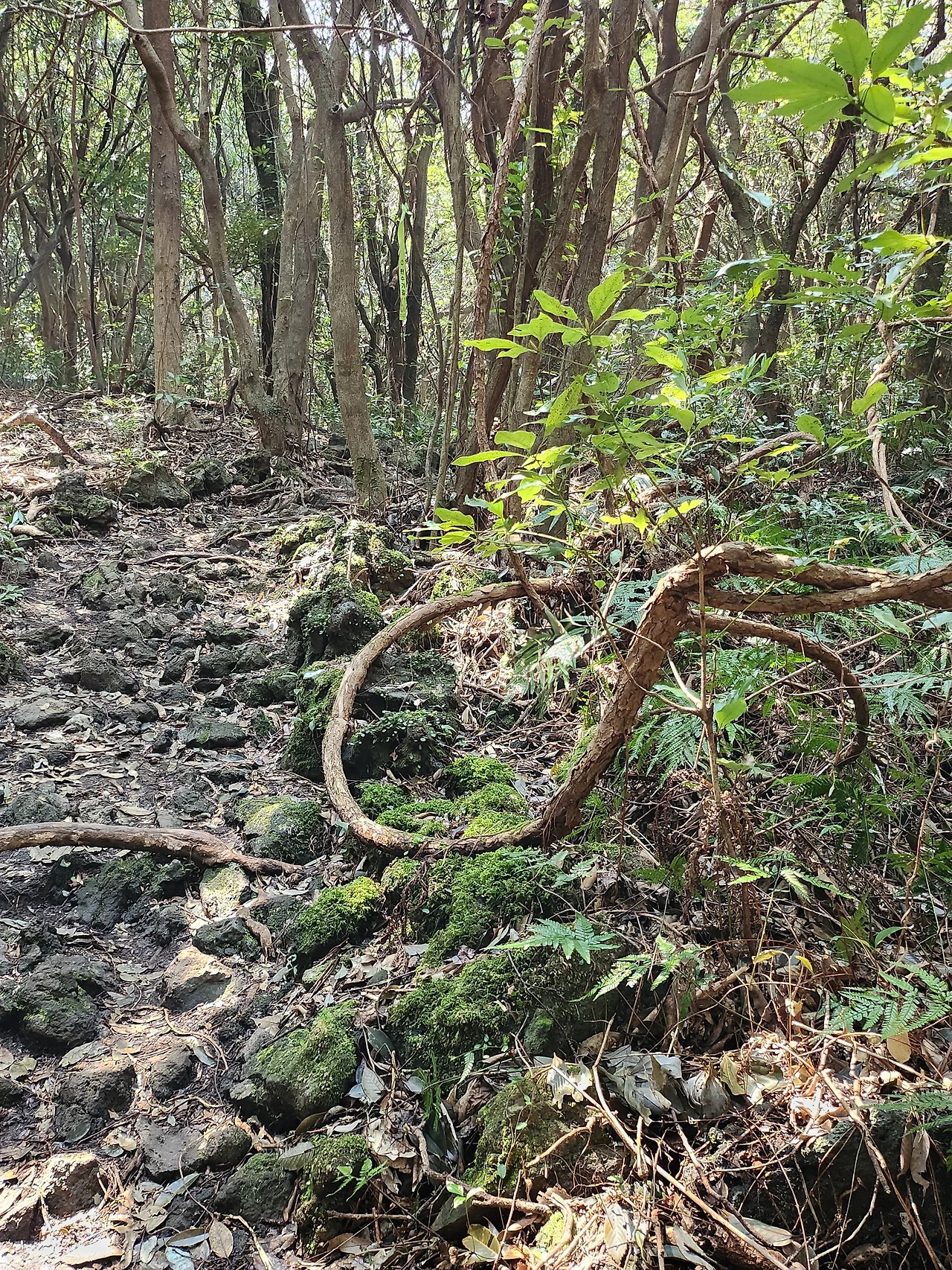 습습한 바닥은 미끄러웠고 화산석은 울퉁불퉁한 데다 돌출된 나무뿌리 몹시 걸리적거렸다.