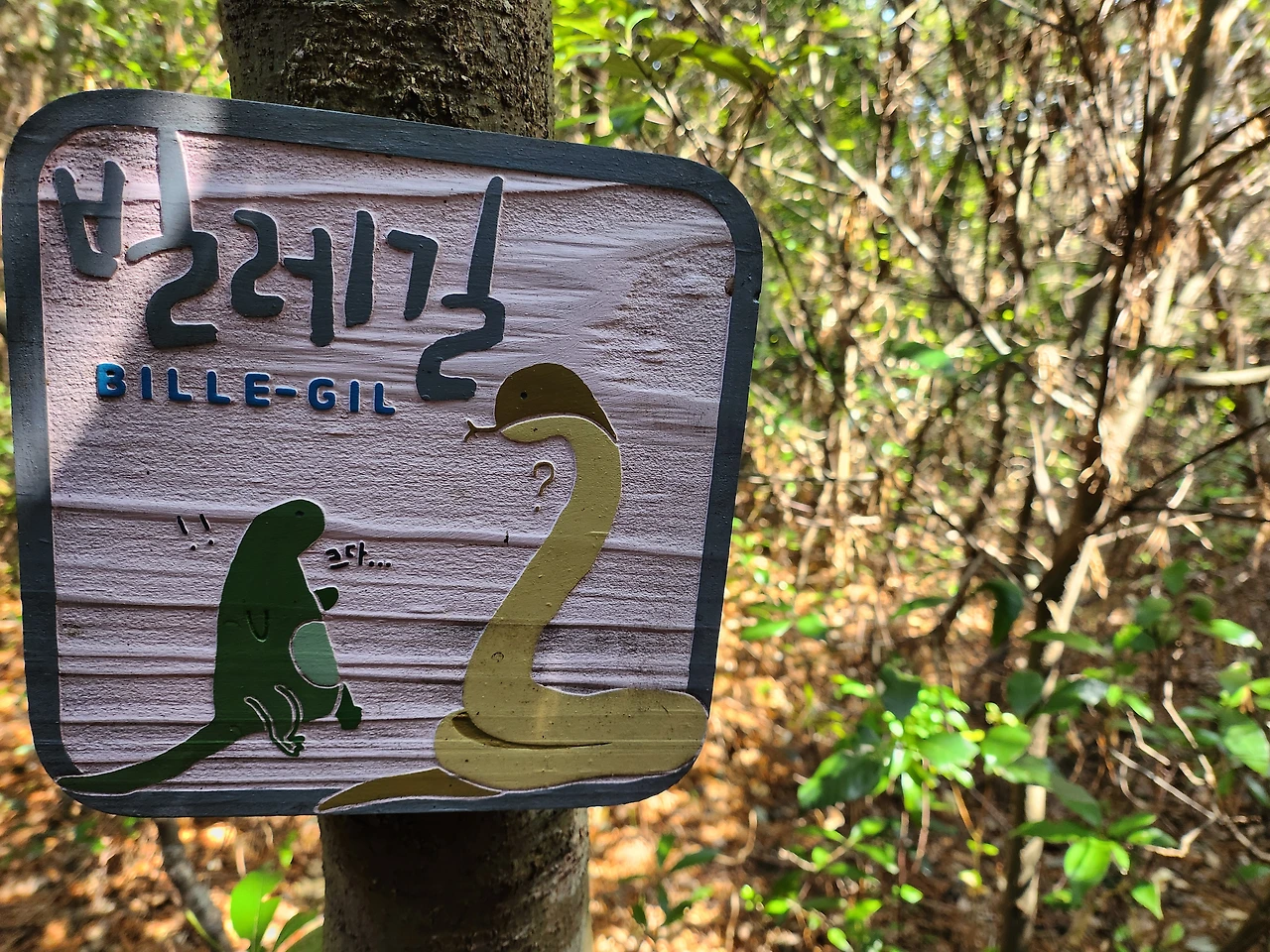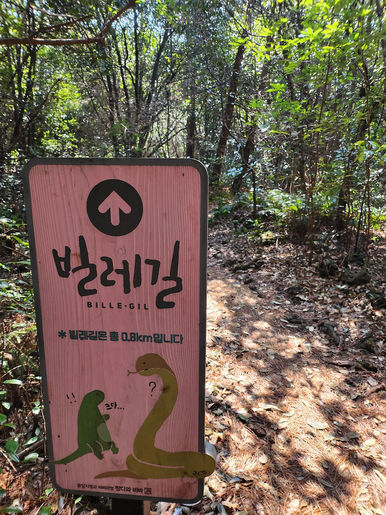 한 시간여 길 따라 이리저리 미로 헤매듯 걷던 숲에서 나오니 빌레길 끝자락.