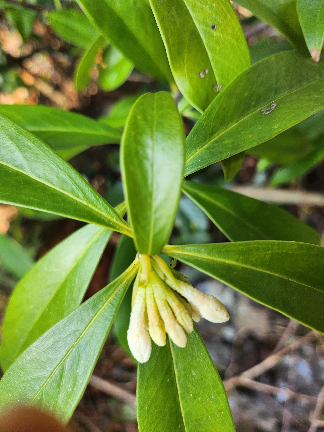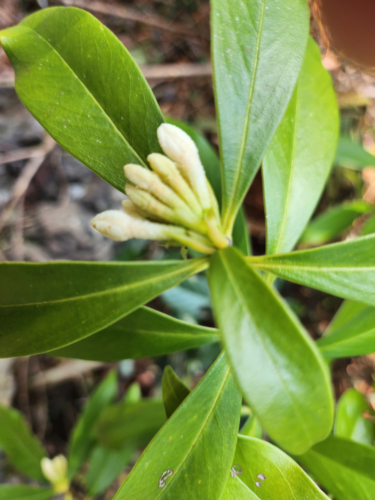 낯익은 유선형 윤기 나는 잎새를 단, 나지막한 나무는 분명 백서향나무 맞는데 가지 끝엔 꽃눈 흔적도 보이지 않았다.