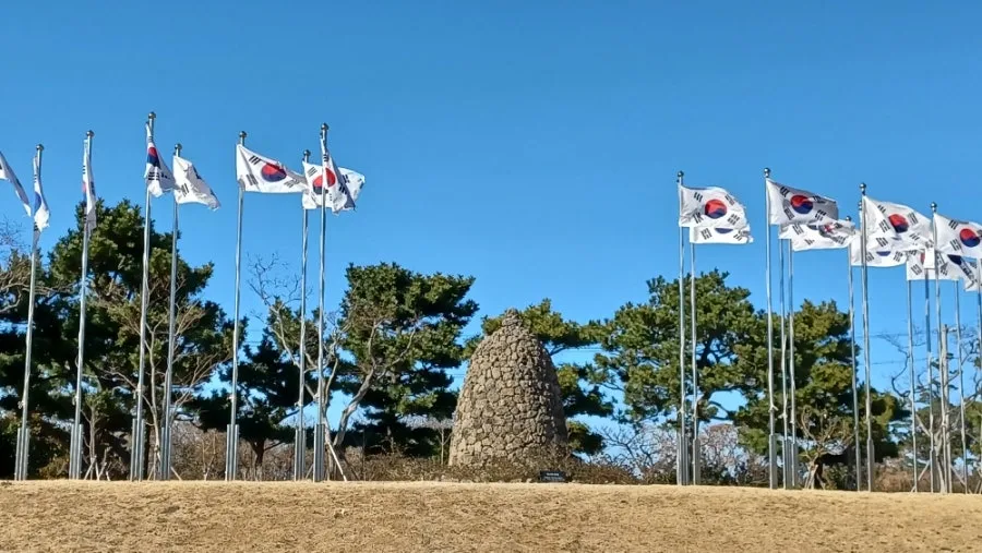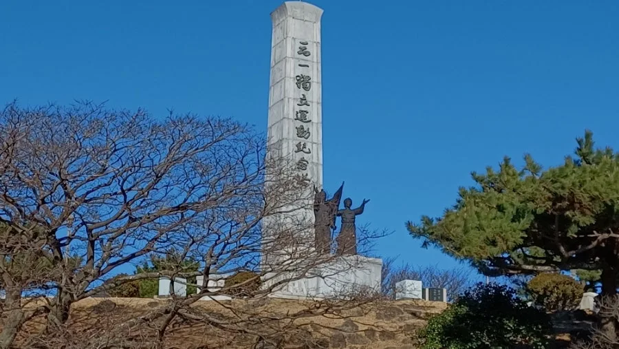 제주 3대 항일운동인 법정사 항일운동, 조천만세운동, 해녀항일운동 등 제주의 항일운동 자료가 일목요연하게 전시된 기념관. 일제 침탈의 기록물과 벽면 부조, 설명패널, 기록화, 영상모니터, 매직비전, 종합그래픽, 복제 모형 등이 체계적으로 전시돼 있었다. 그곳 전시물 중, 항일투쟁 건국훈장 애국장이 추서됐어도 전해 받을 포상자가 없어 기념관에 보관된 훈장을 보자 심히 가슴이 먹먹해졌다. 대가 끊긴 저간의 사연 미루어 짐작이 되기에. 항일운동을 상징하는 3·1 운동 기념탑과 조형물이 둘러선 공원은 잔디 고르게 깔린 매우 넓은 부지였다. 관광지인 제주라 외지인의 방문자는 거의 없다고 봐야겠지만 그래도 너무나 휑하게 빈 공간이라 아쉬운 감이 들었다.