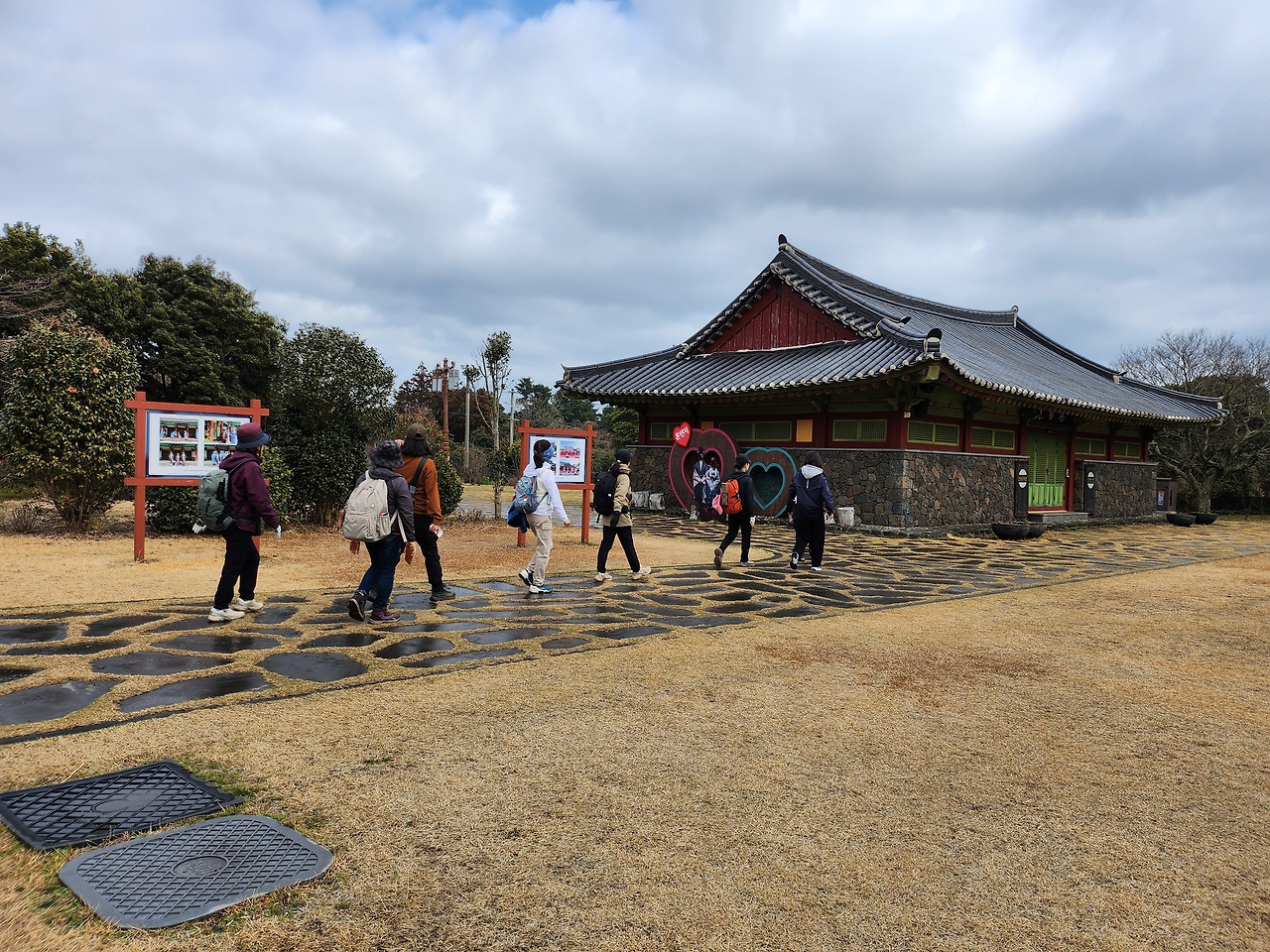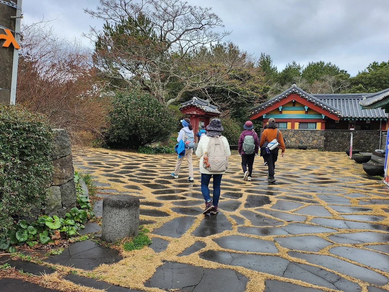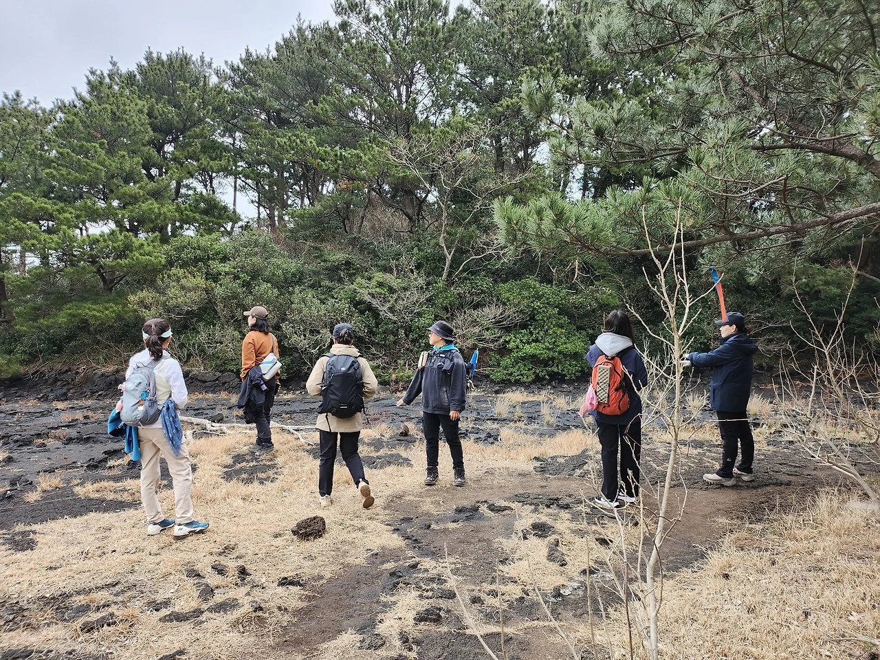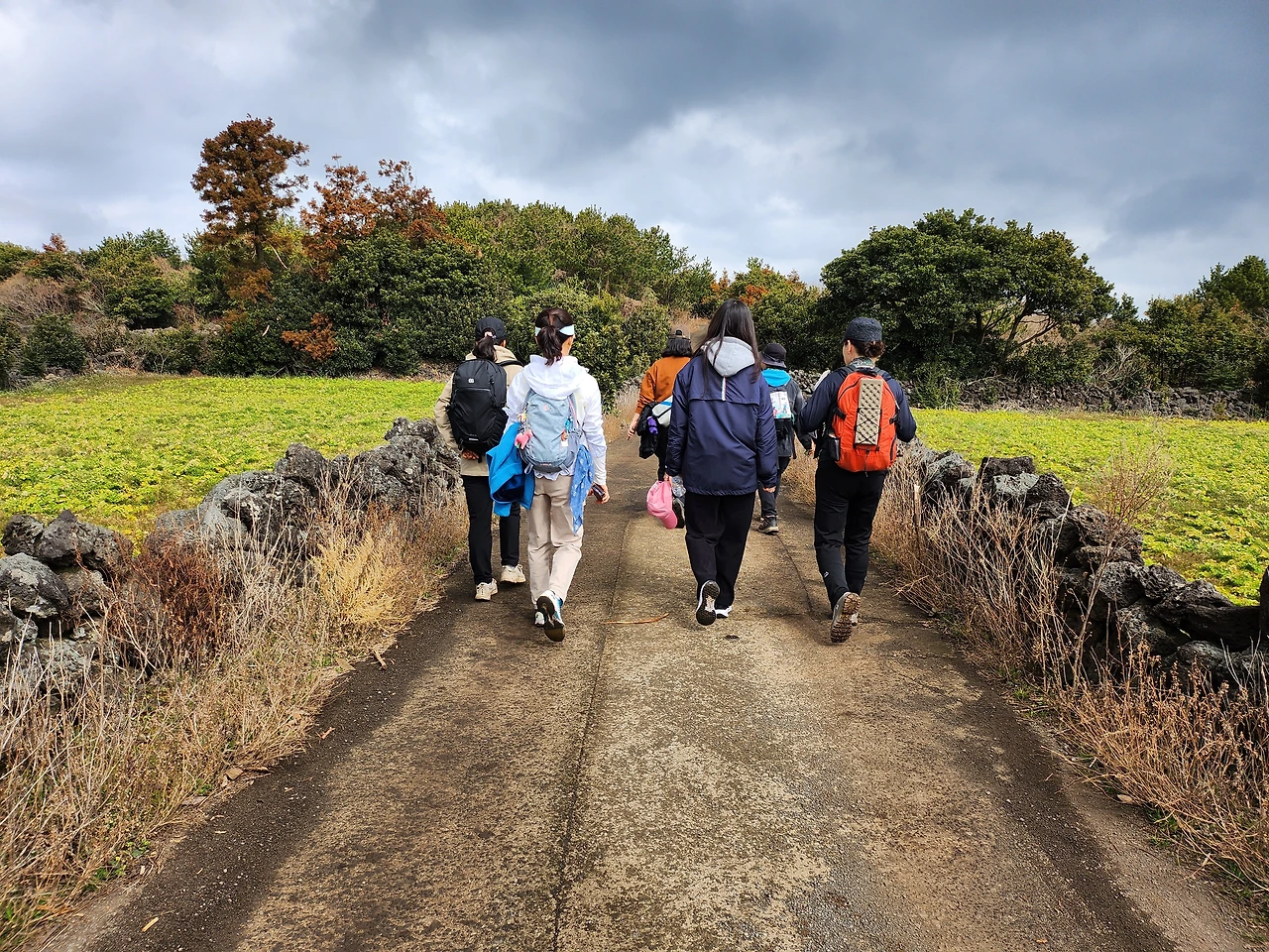 그렇게 열린 제주 신화 속 인연의 길을 걸으며 처음 만나 서먹한 팀원들은 비에 젖은 풍경들에 취해 들었네요.