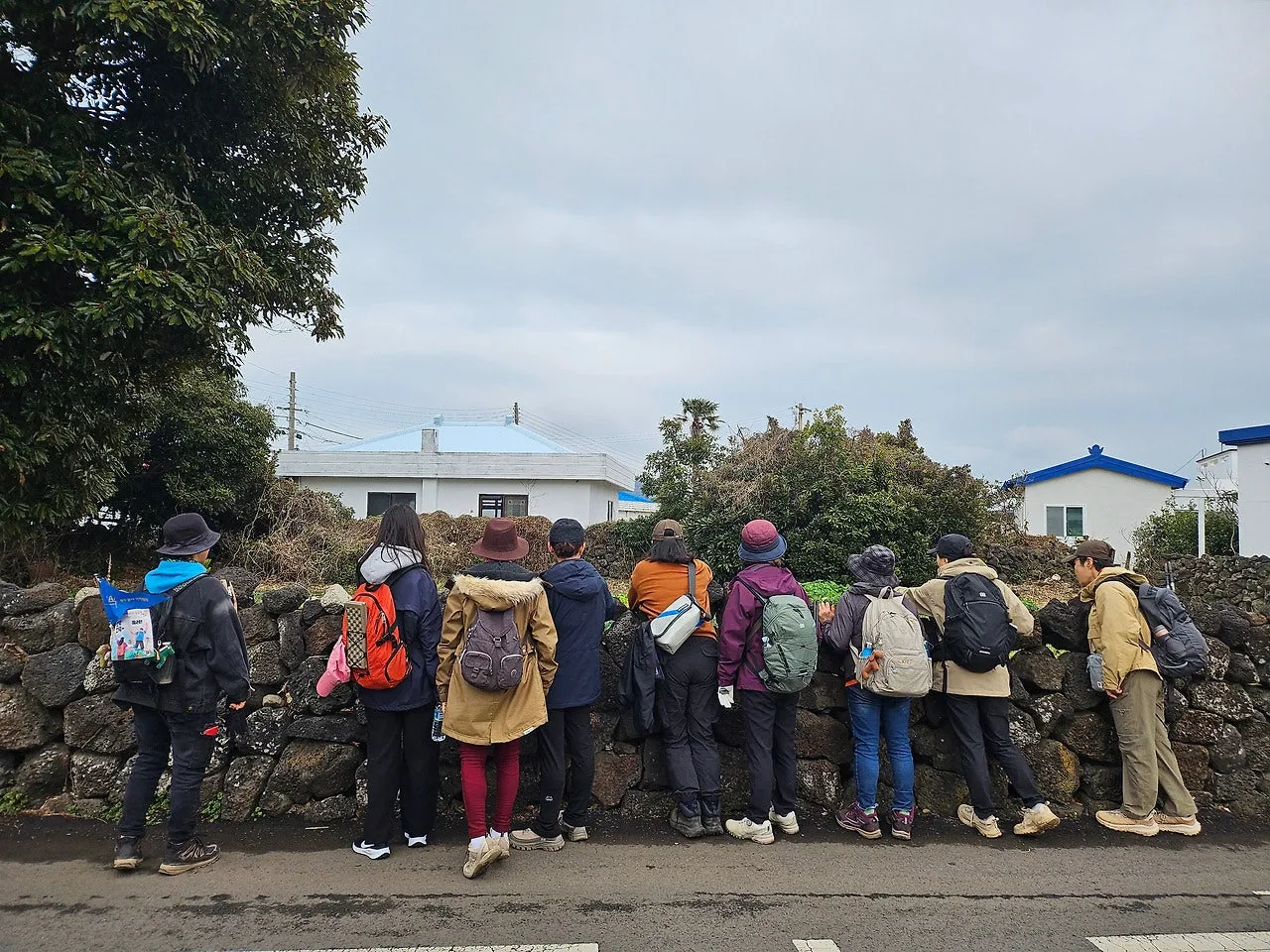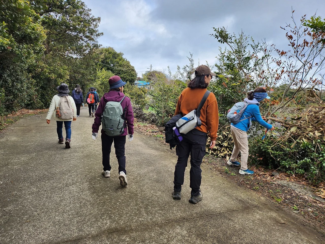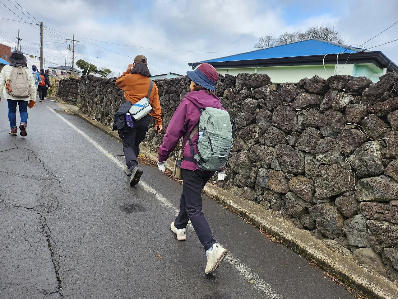 자원봉사자 분들이 안전하게 선두와 후미를 지키면서 환해장성이 있는 동쪽 방향으로 걷기 시작했지요.
