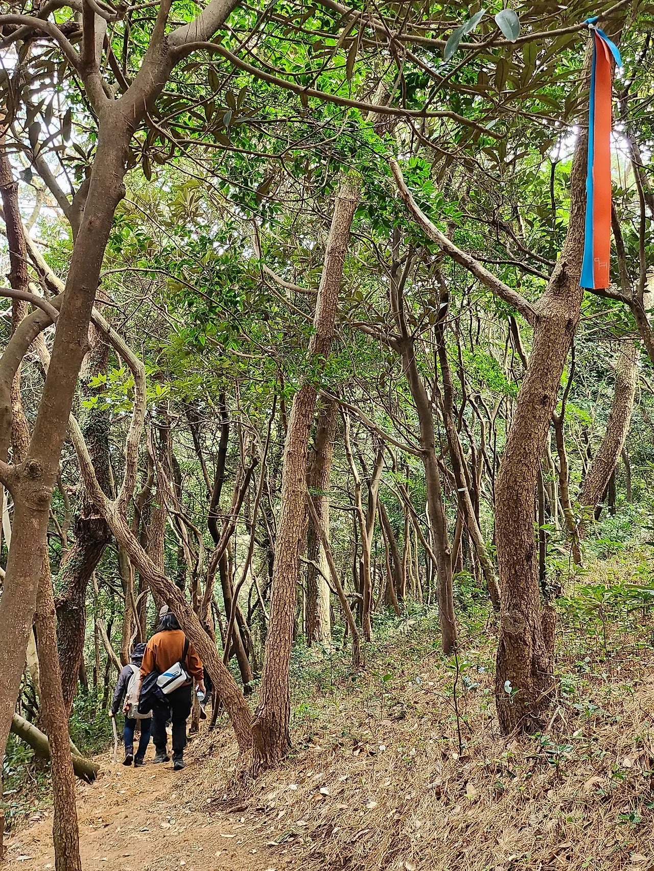 그때, 가지치기를 해서 길가에 쌓아둔 마른 줄기에 올레길 리본이 묶여있는 걸 용케도 동행이 발견해 풀어서 다시 가로수 가지에 묶어 놓더군요.